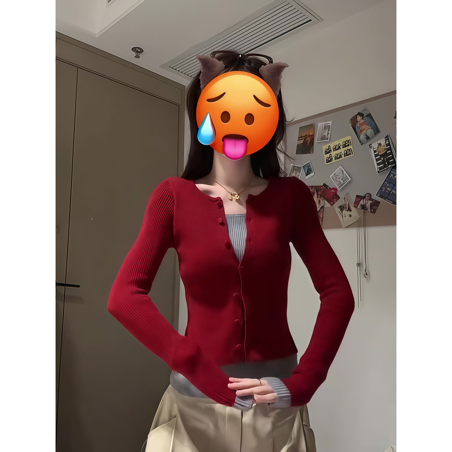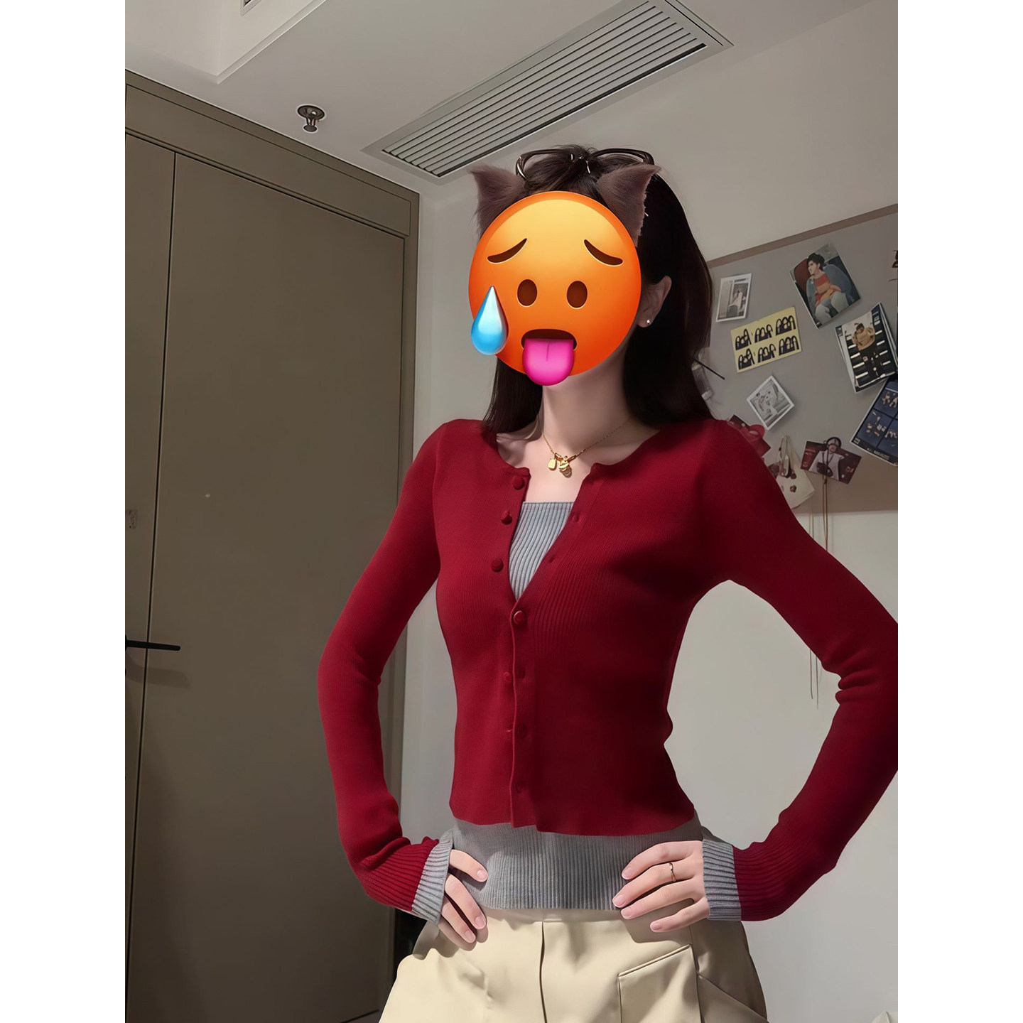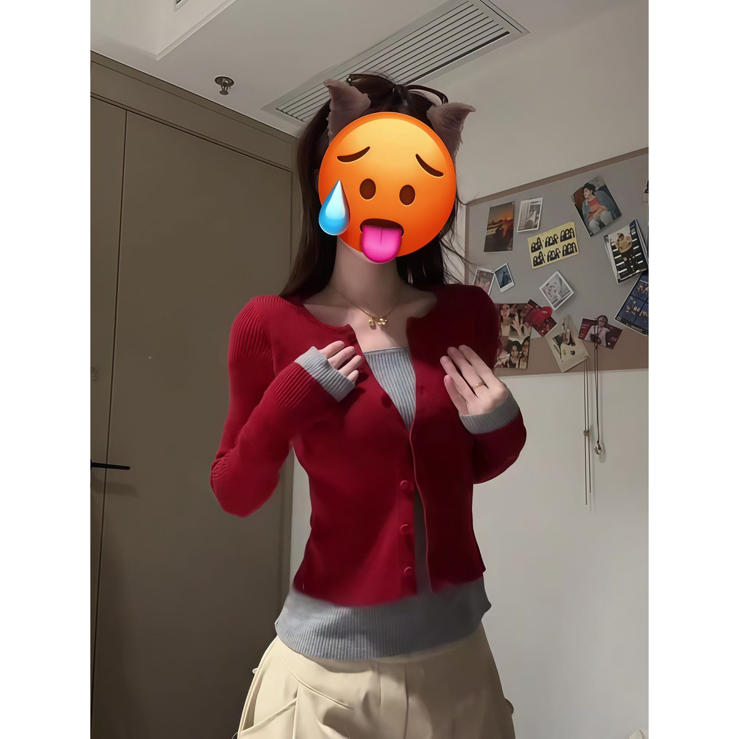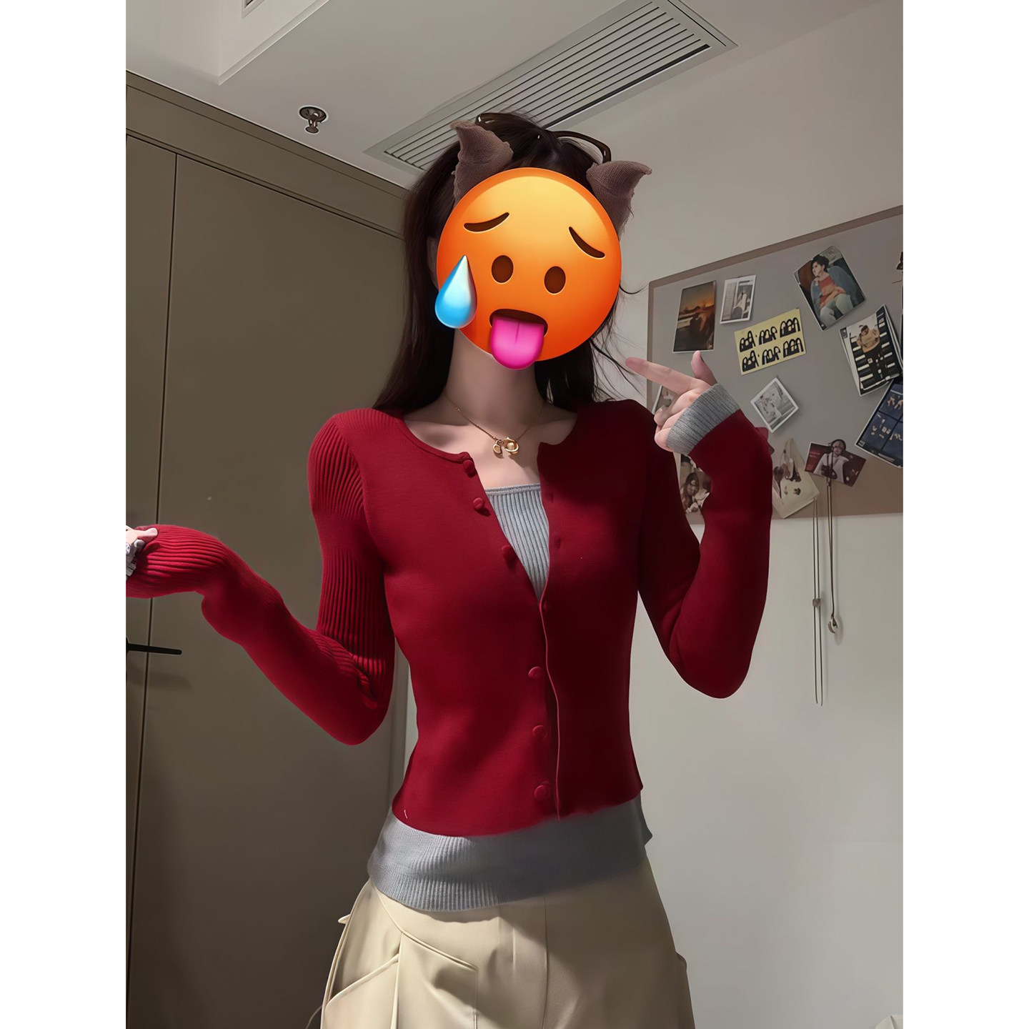 辣妹风时髦百搭显瘦撞色假两件针织衫女秋冬新款修身短款打底毛衣