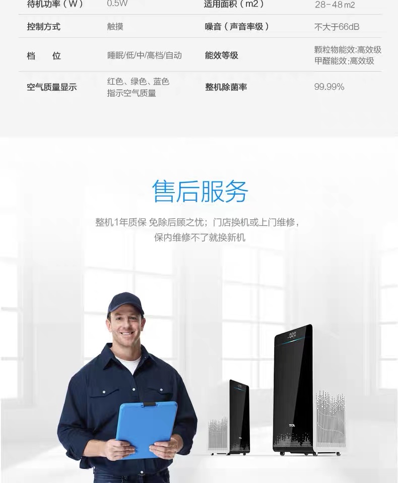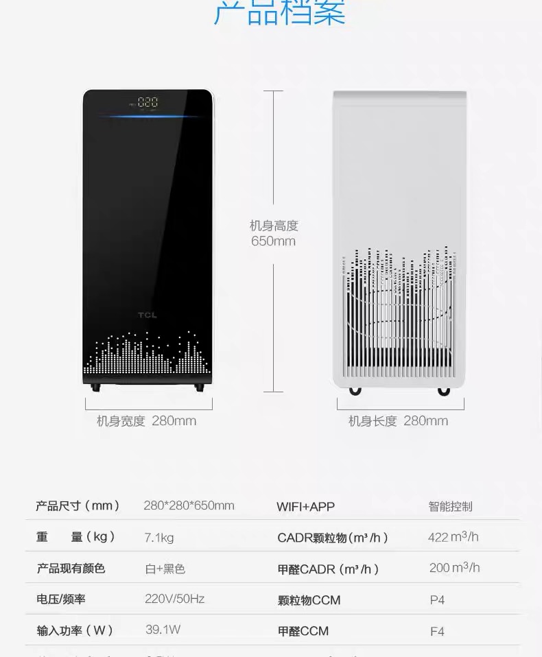 TCL420智能空气净化器家用除甲醛异味灰尘花粉棋牌室除烟吸二手烟