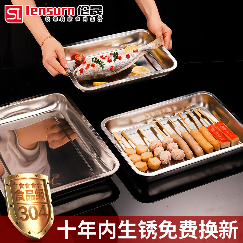 食品级304不锈钢水果盘长方形托盘餐盘 方盘 烧烤盘 平底蒸鱼盘子