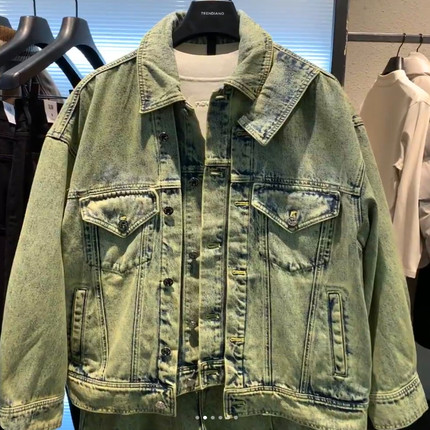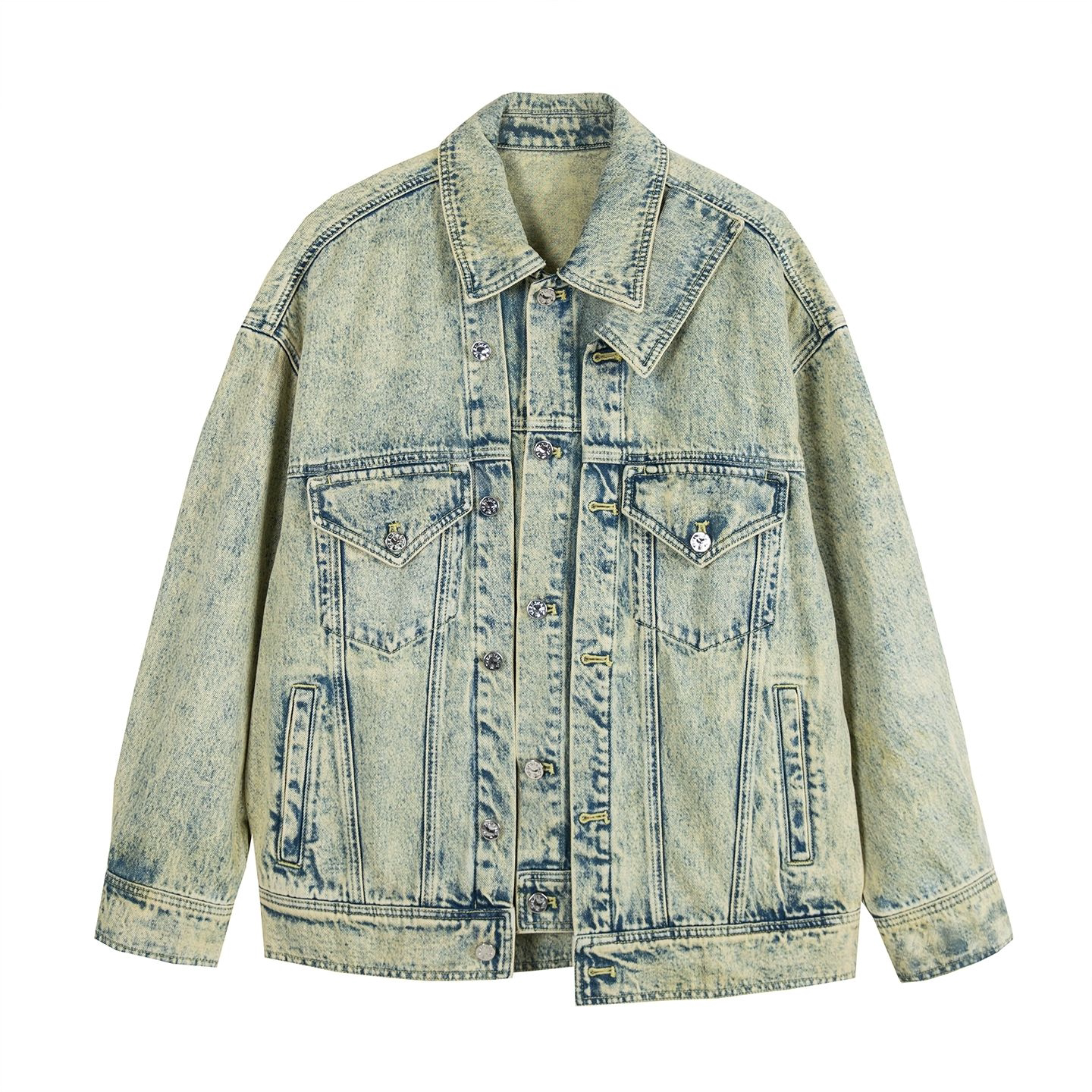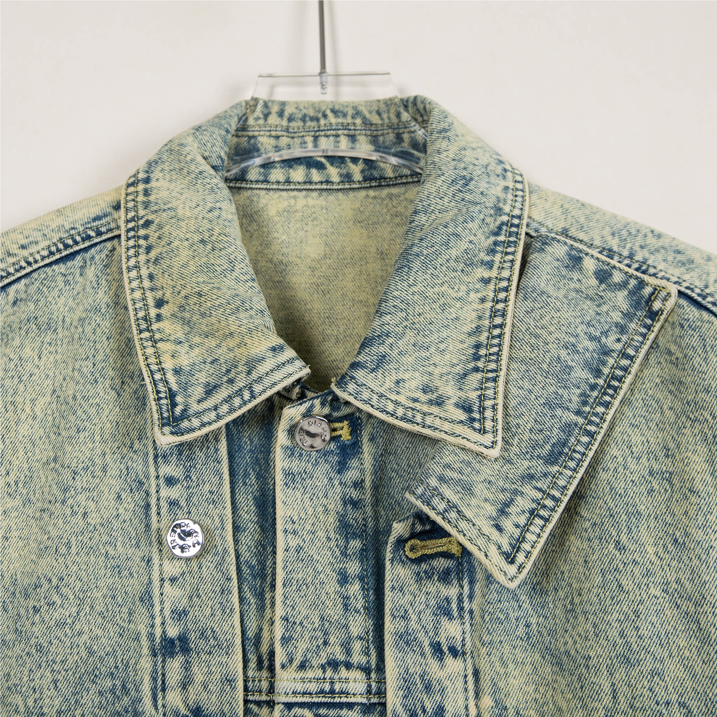 秋季男士牛仔夹克时尚层叠拼接翻领宽松牛仔外套潮91740/L2