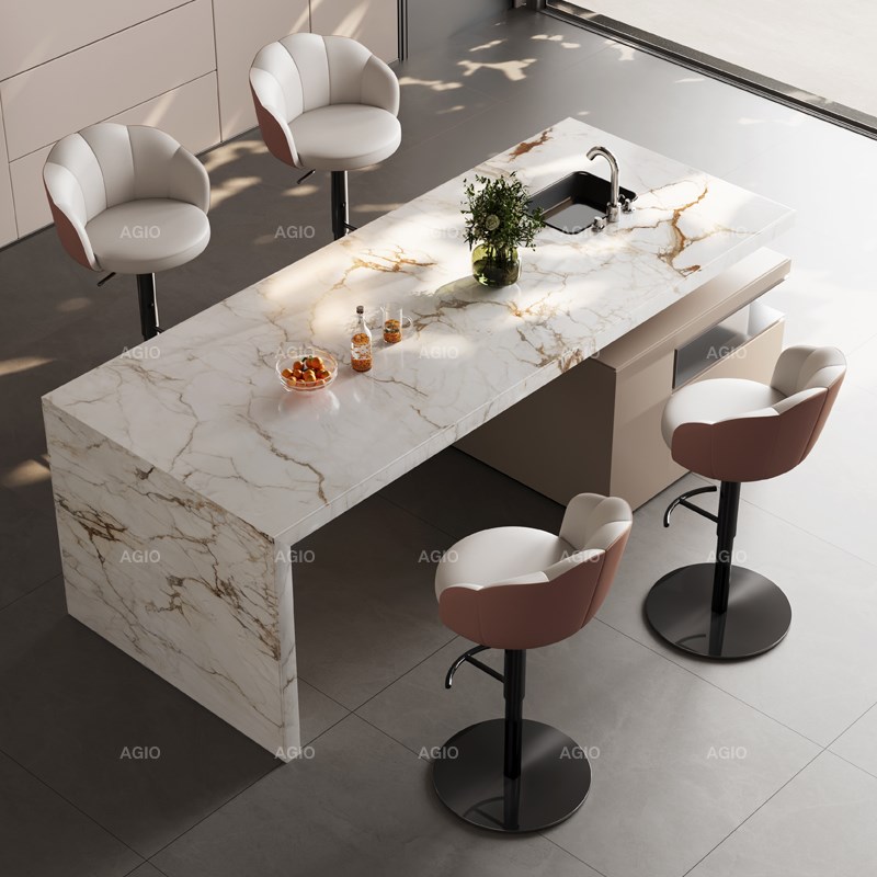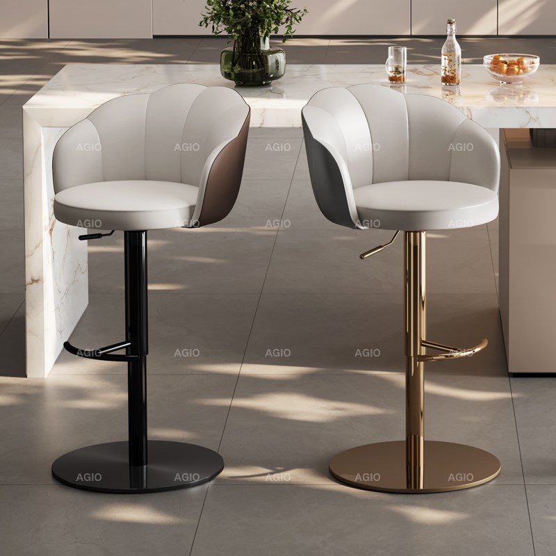 意式轻奢吧台椅现代简约设计师高脚椅家用升降真皮凳前台椅岛台椅