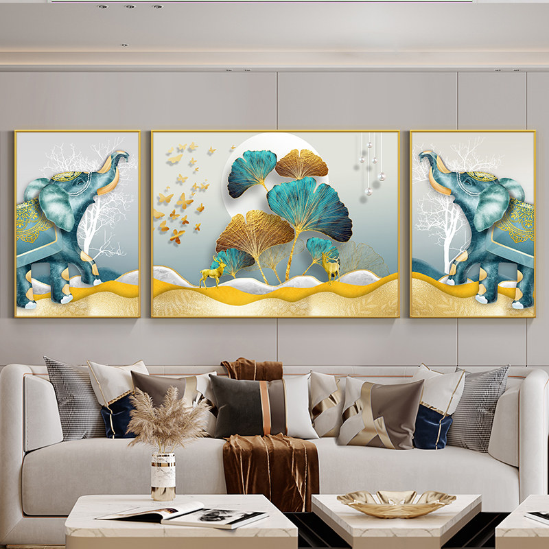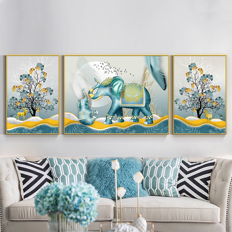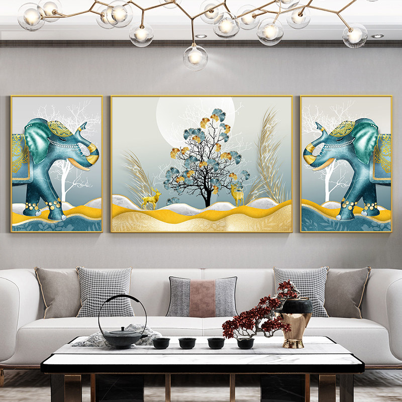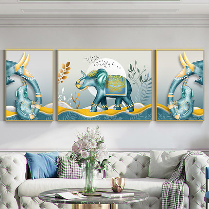 客厅装饰画现代简约沙发背景墙面壁画美式大象招财三联画简欧挂画