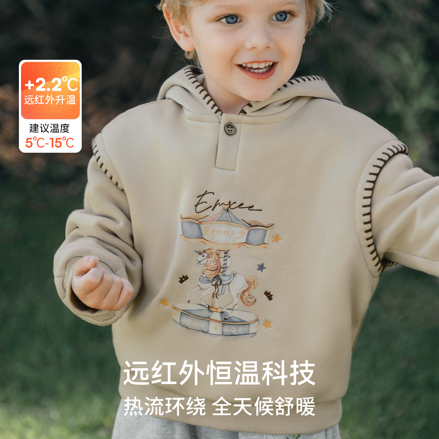 嫚熙童装儿童卫衣2025新款秋冬加绒保暖男女宝连帽上衣百搭外套