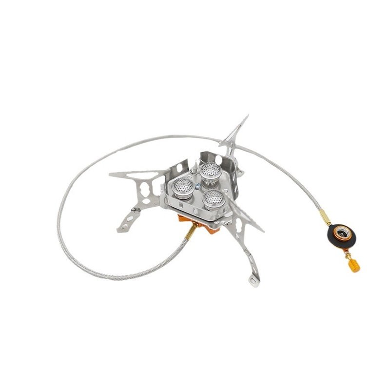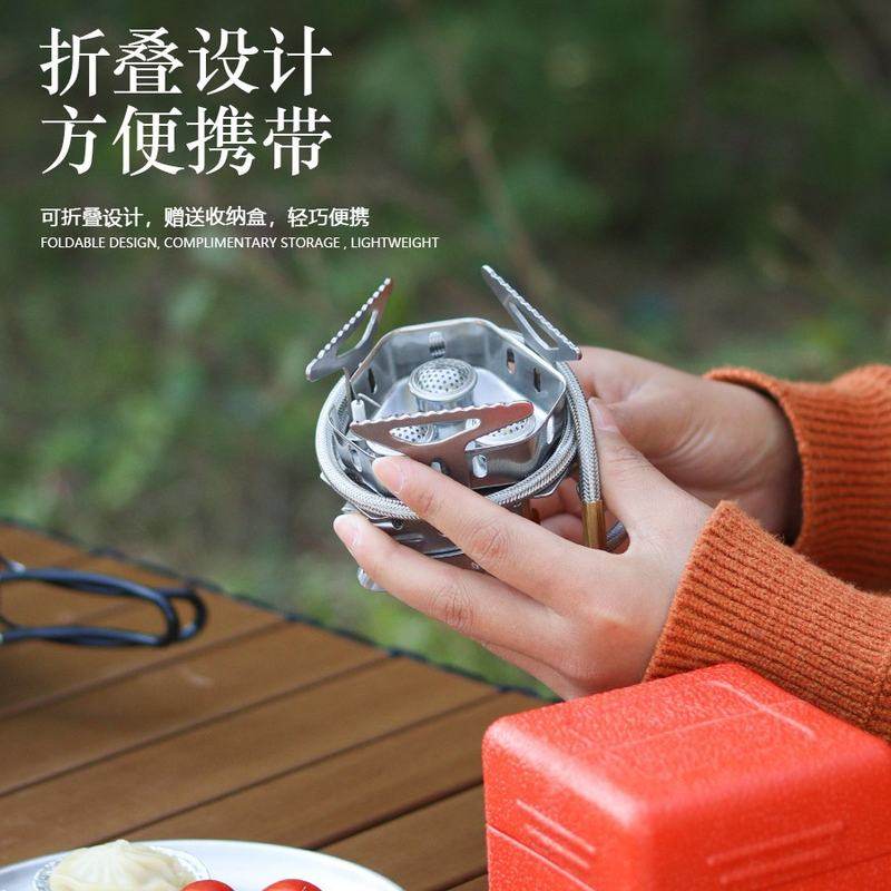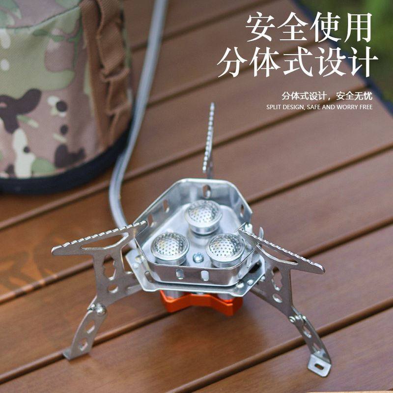 户外野餐节能炉具分体式不锈钢可折叠炉防风便携式炉三头炉头