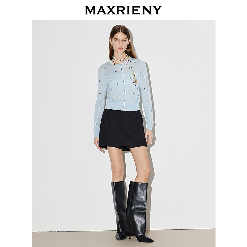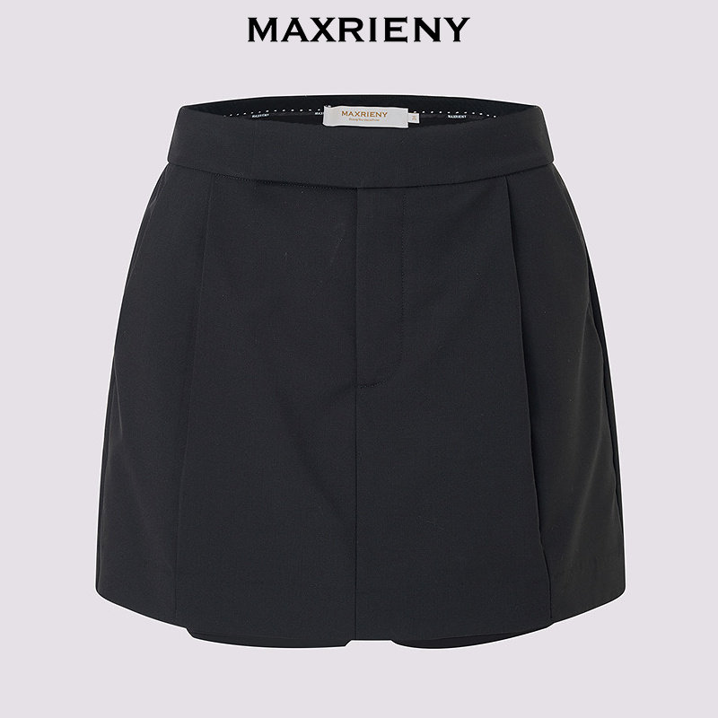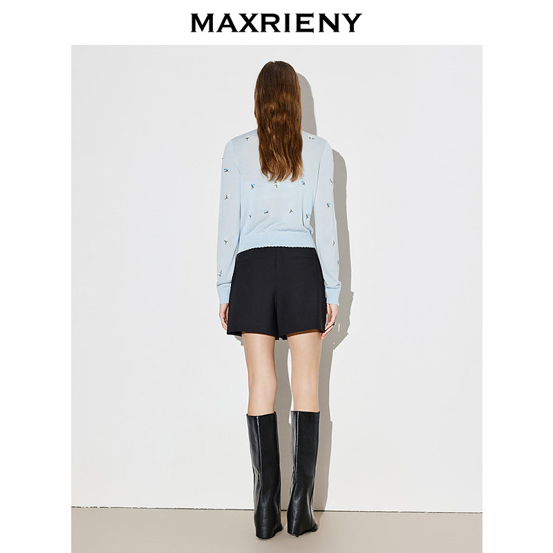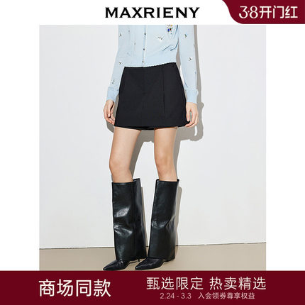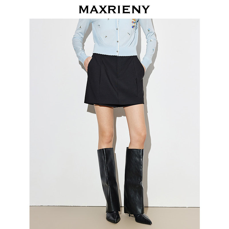 【商场同款】MAXRIENY黑色休闲裤2026年春季新款羊毛短裤阔腿裤