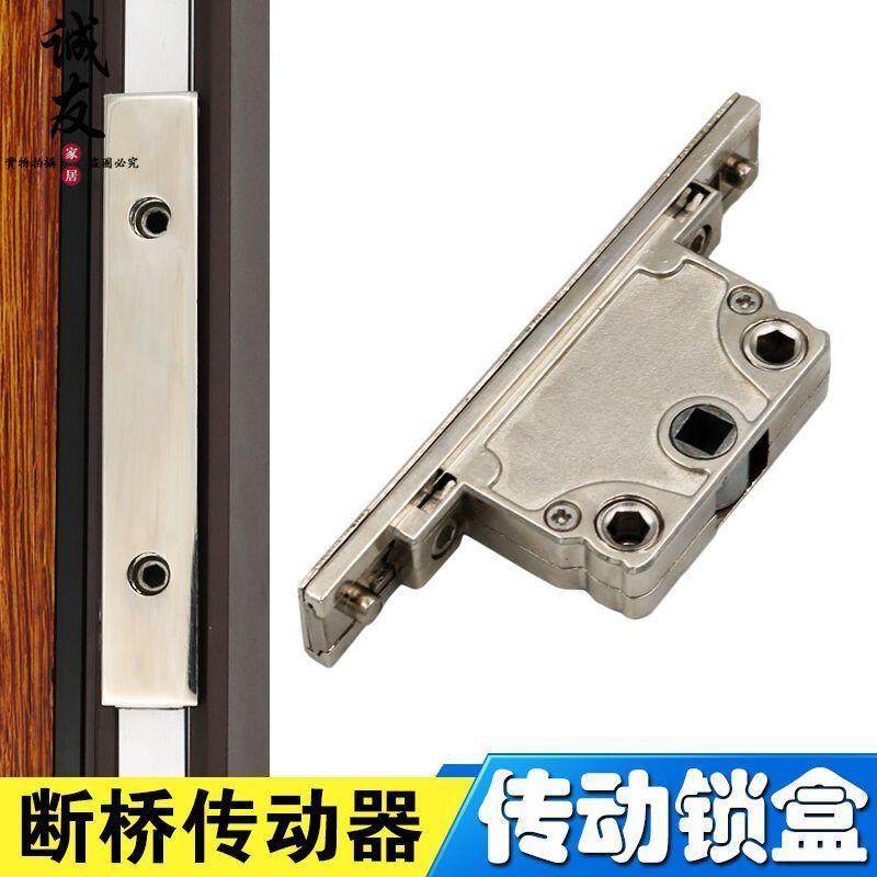 断桥铝合金门窗传动器锁盒纱窗一体联动杆双向锁体平开窗诺托配件