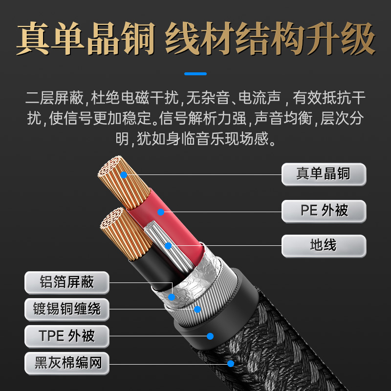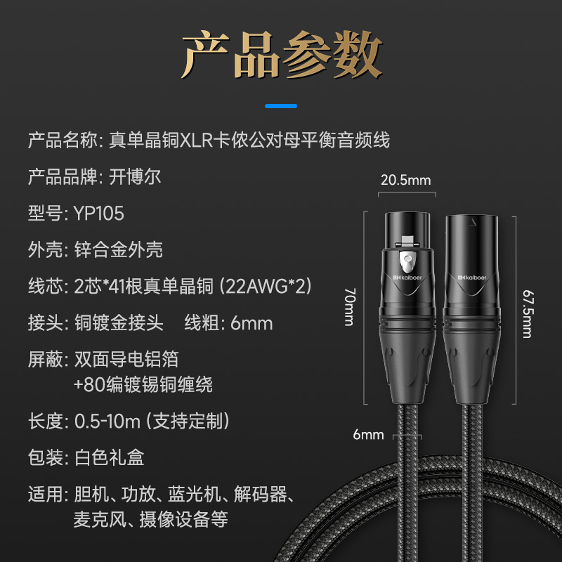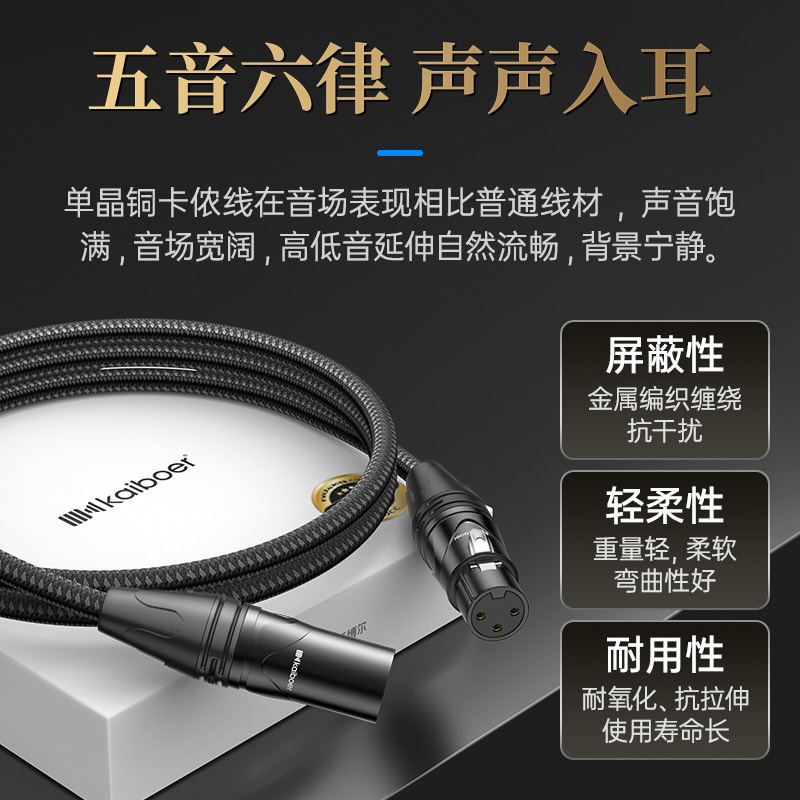 开博尔单晶铜卡农线公对母XLR平衡线话筒音频线麦克风卡侬连接线