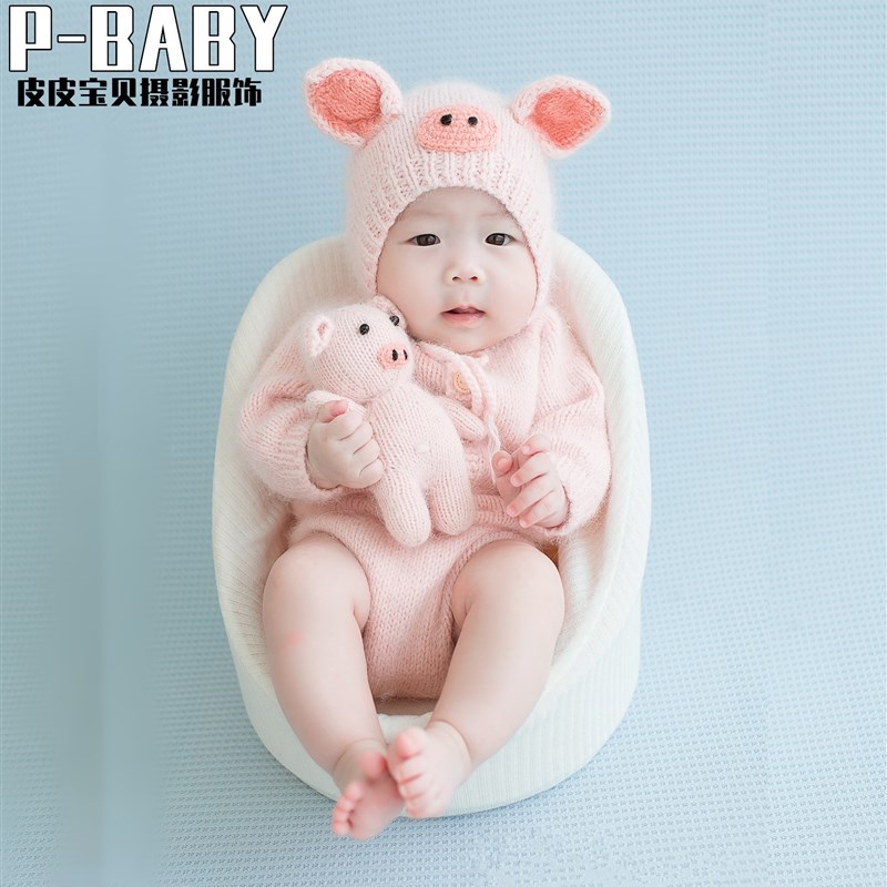 新款儿童摄影服装满月百天宝宝拍照服饰影楼拍照小猪造型主题套装
