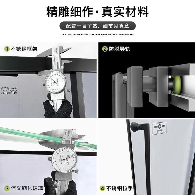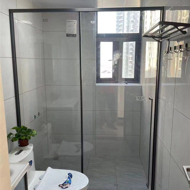 定制黑色一字体淋浴房浴室化妆室玻璃隔断移门干湿分离新款窄边框