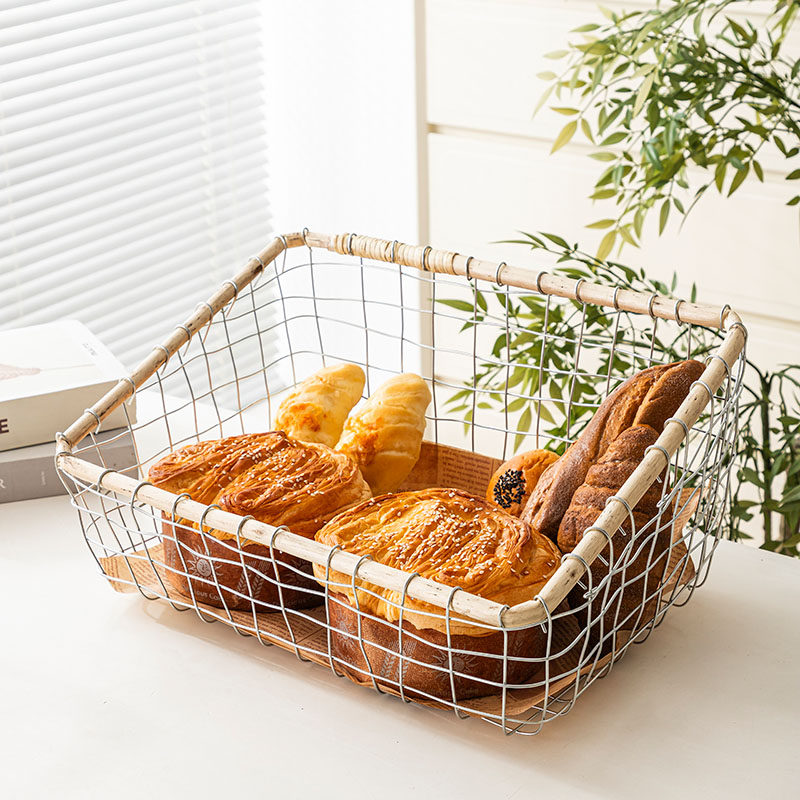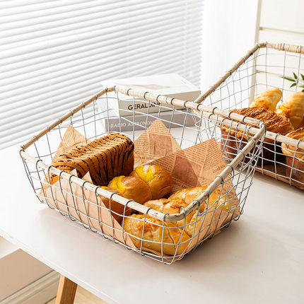 日式北欧风面包篮铁艺铁丝编织鸡蛋篮收纳筐桌面零食点心篮杂物篮
