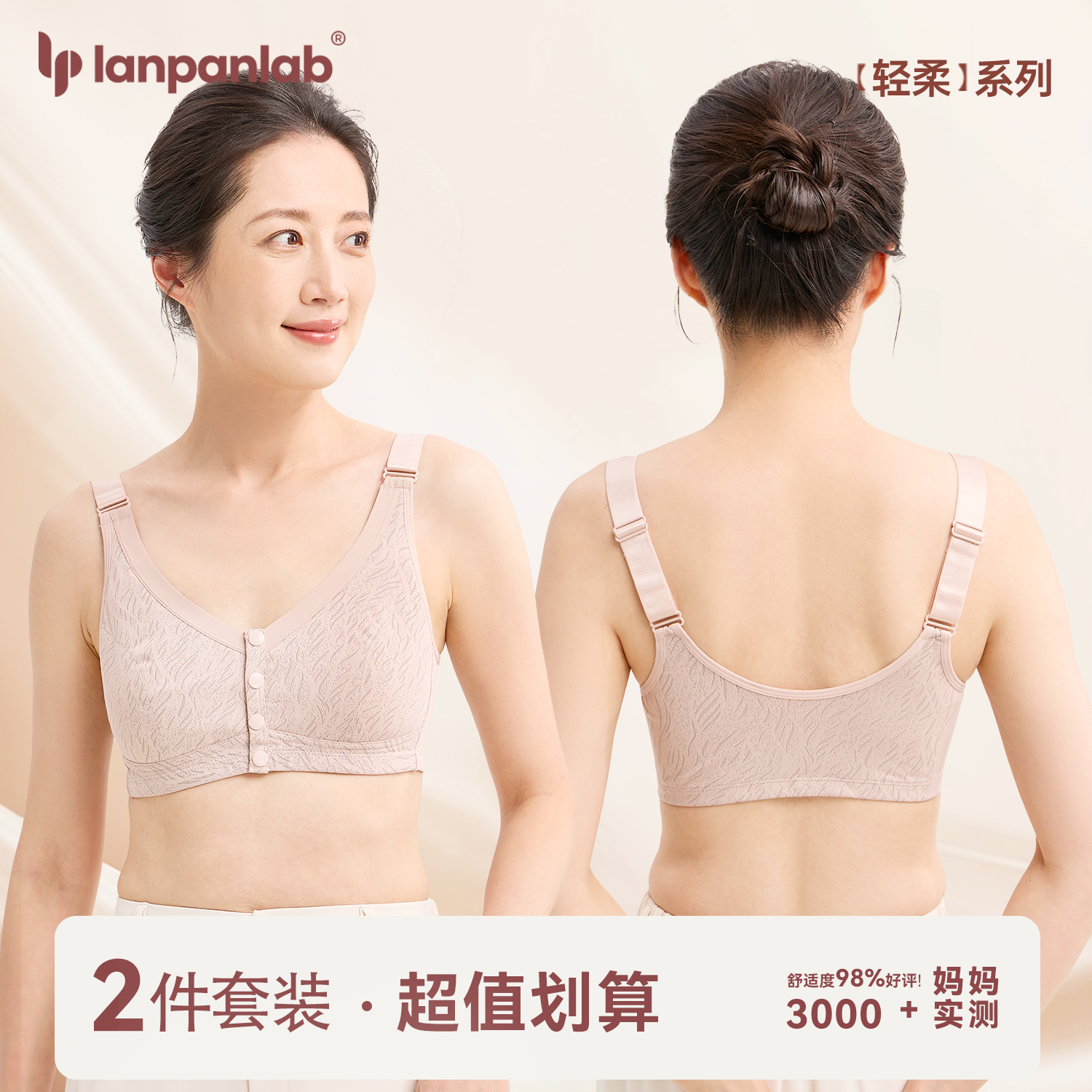 妈妈内衣女前扣文胸无钢圈中老年人妇女背心式大码纯棉胸罩夏季薄