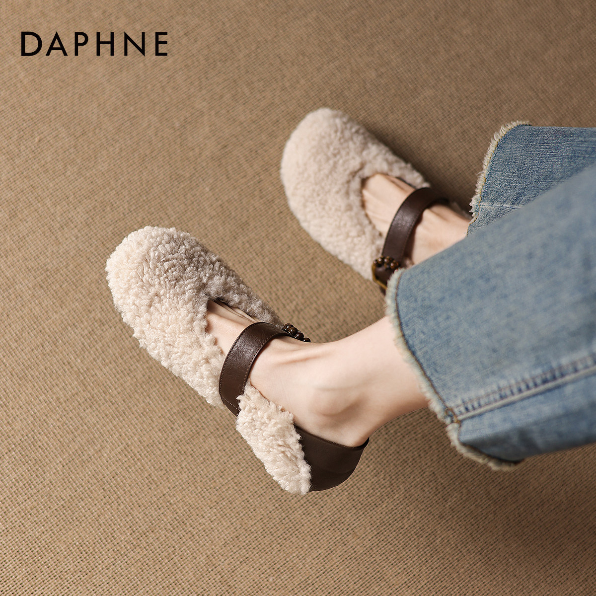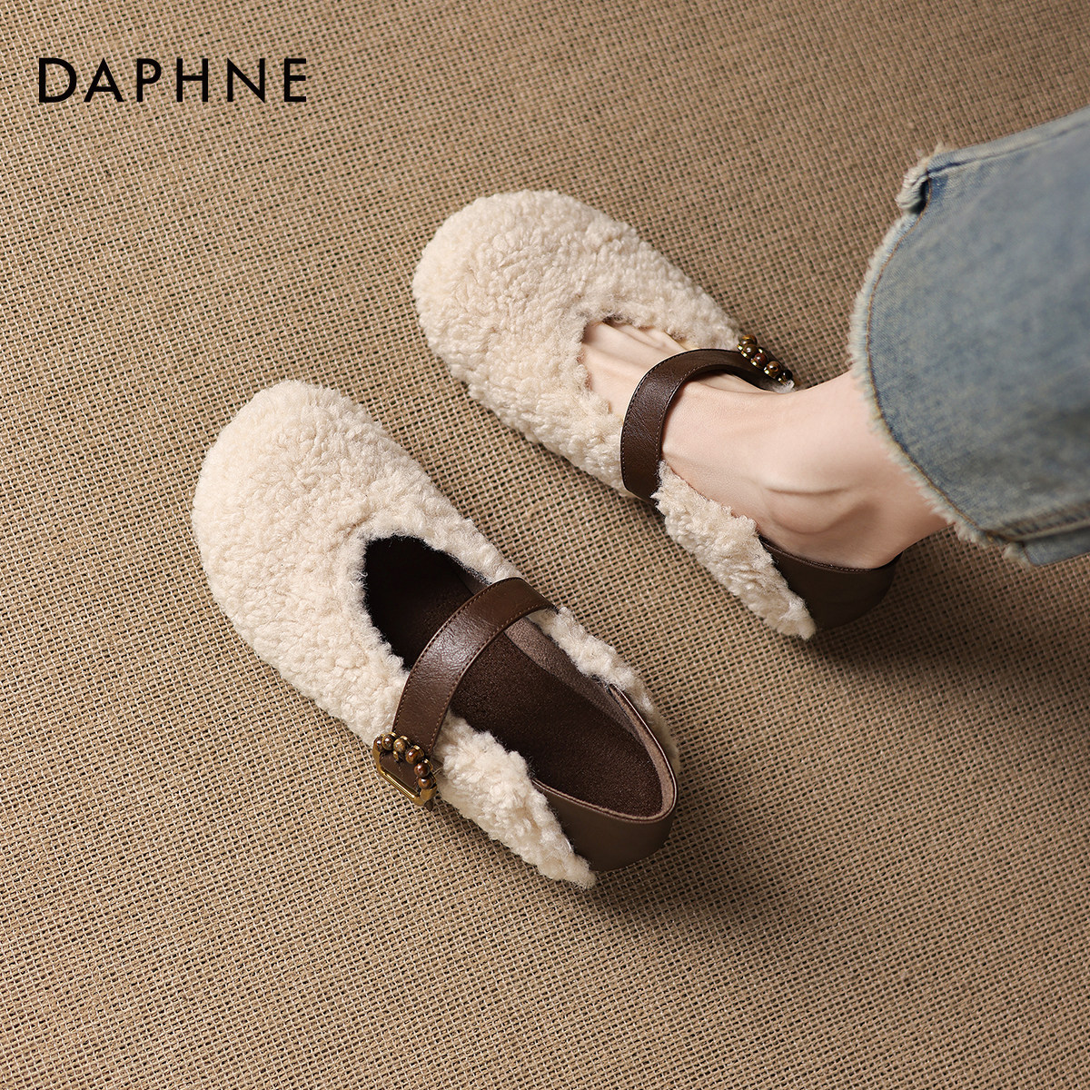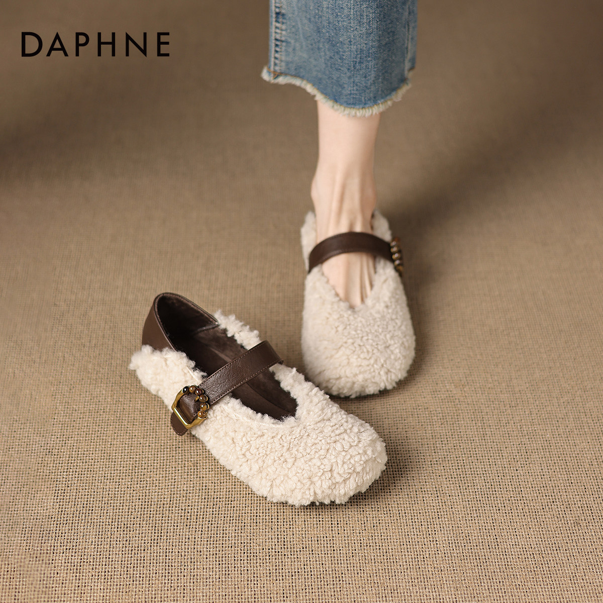 达芙妮加绒雪地靴女2026新款冬季平底勃肯毛毛鞋保暖棉鞋玛丽珍鞋