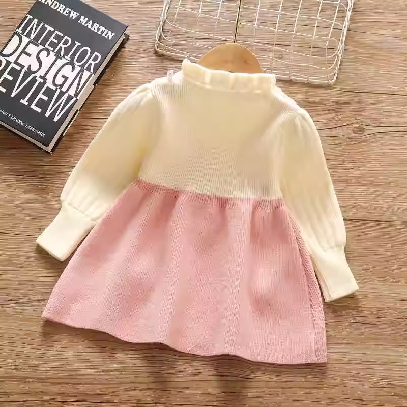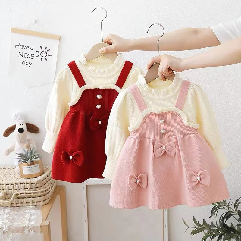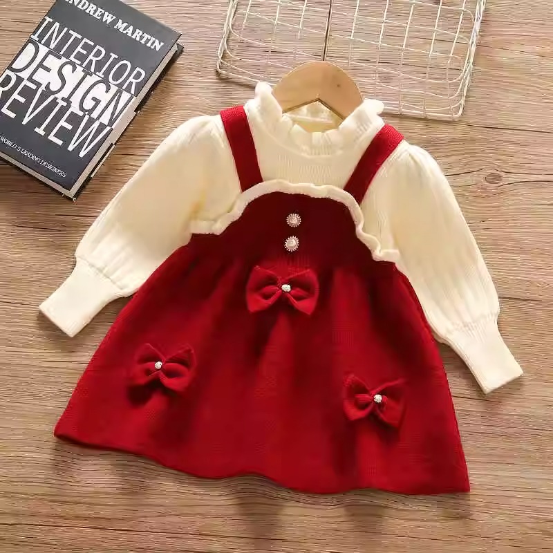 女童毛衣连衣裙秋冬款2025新款洋气时髦儿童公主裙蝴蝶结女孩裙子