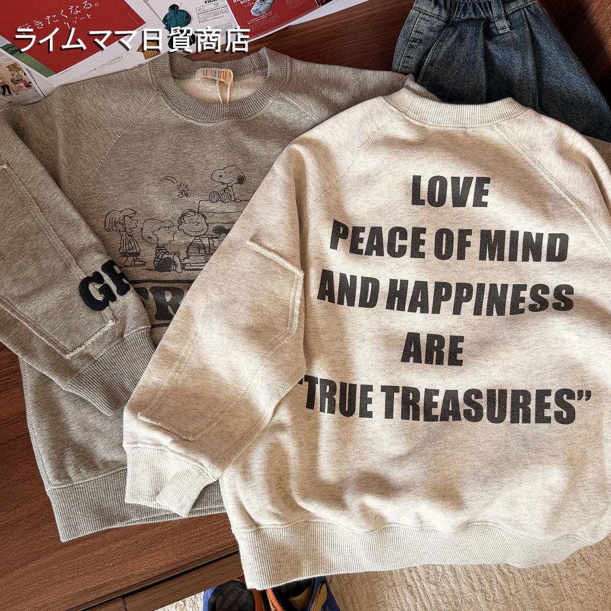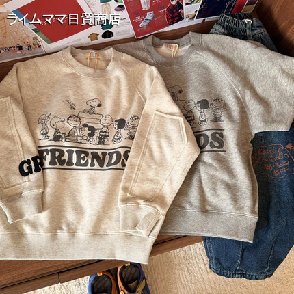 2025秋冬男女童宽松圆领卫衣史努比卡通印花亲子 加绒圈圈棉上衣