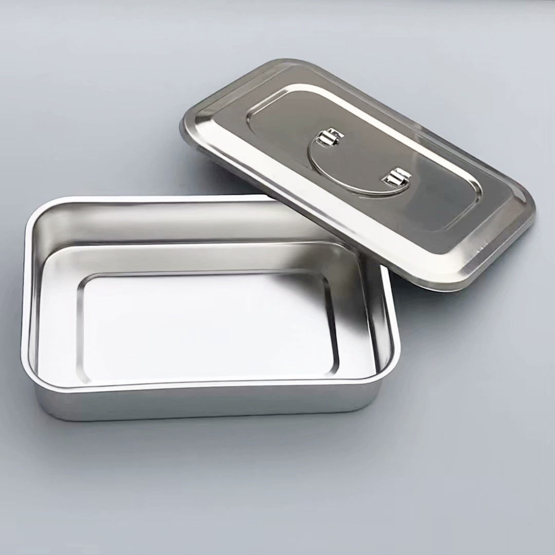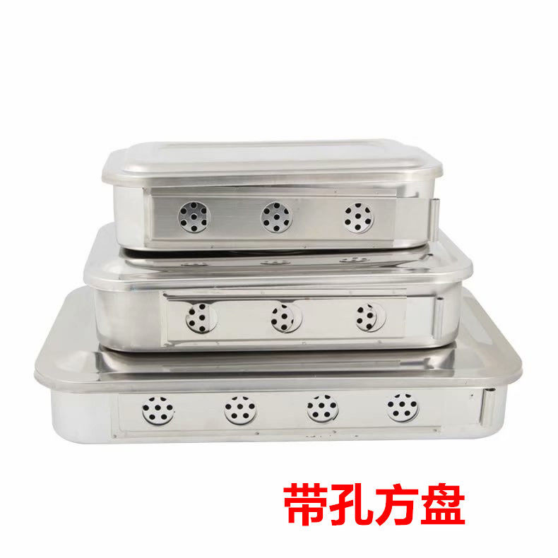 医用304不锈钢消毒盘带盖方盘托盘有孔消毒盒 高温消毒器皿器械盘