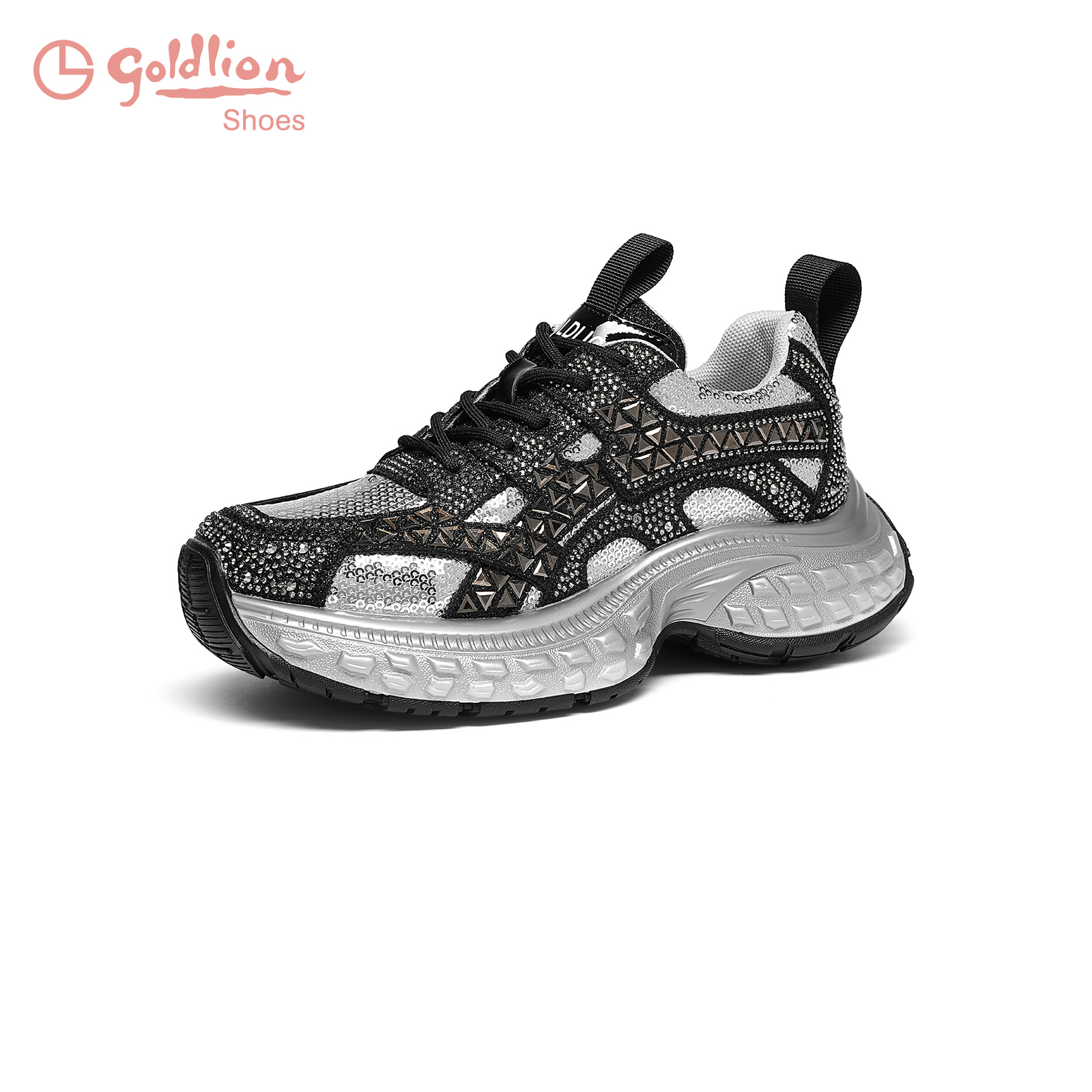金利来女鞋春秋新款设计感拼接亮片水钻百搭厚底运动休闲老爹鞋女
