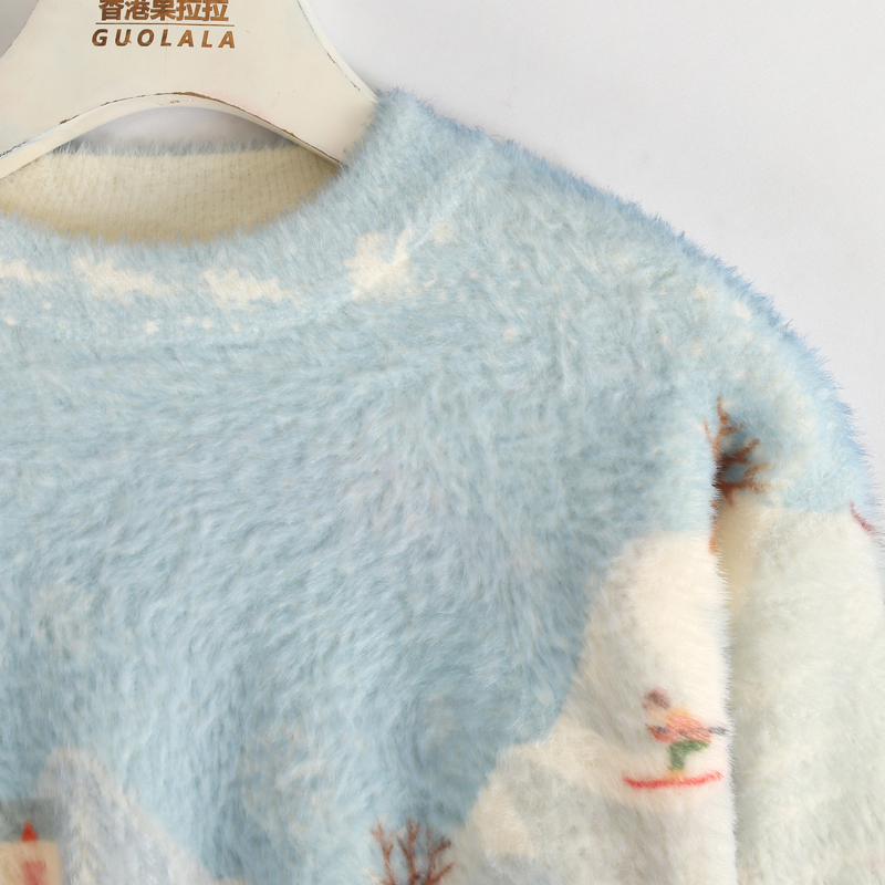 雪乡涂鸦儿童水貂绒毛衣加绒加厚2025秋冬新款女童男童针织衫女宝