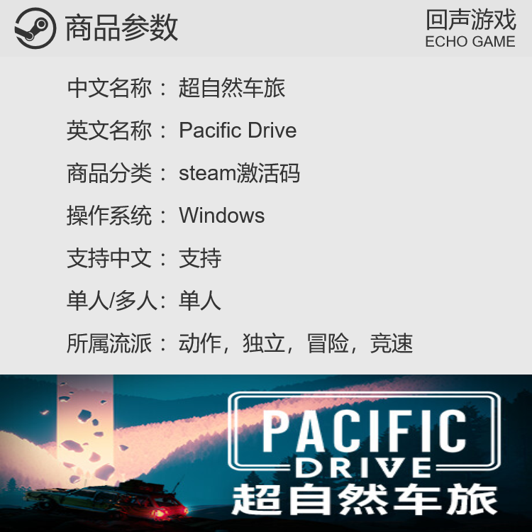 Steam 正版国区key 超自然车旅 Pacific Drive 激活码 入库 秒发
