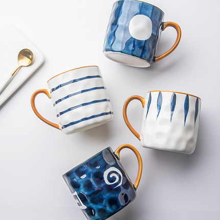 釉下彩马克杯一家四口三口陶瓷水杯套装家用喝水杯情侣咖啡杯茶杯