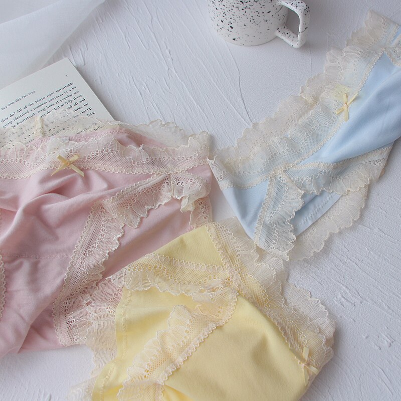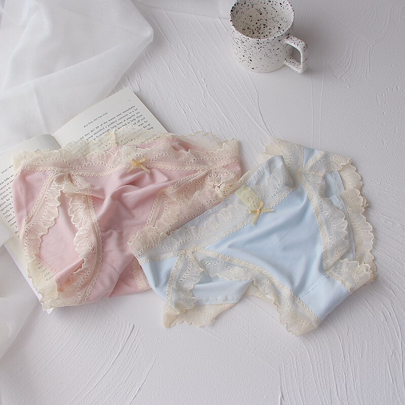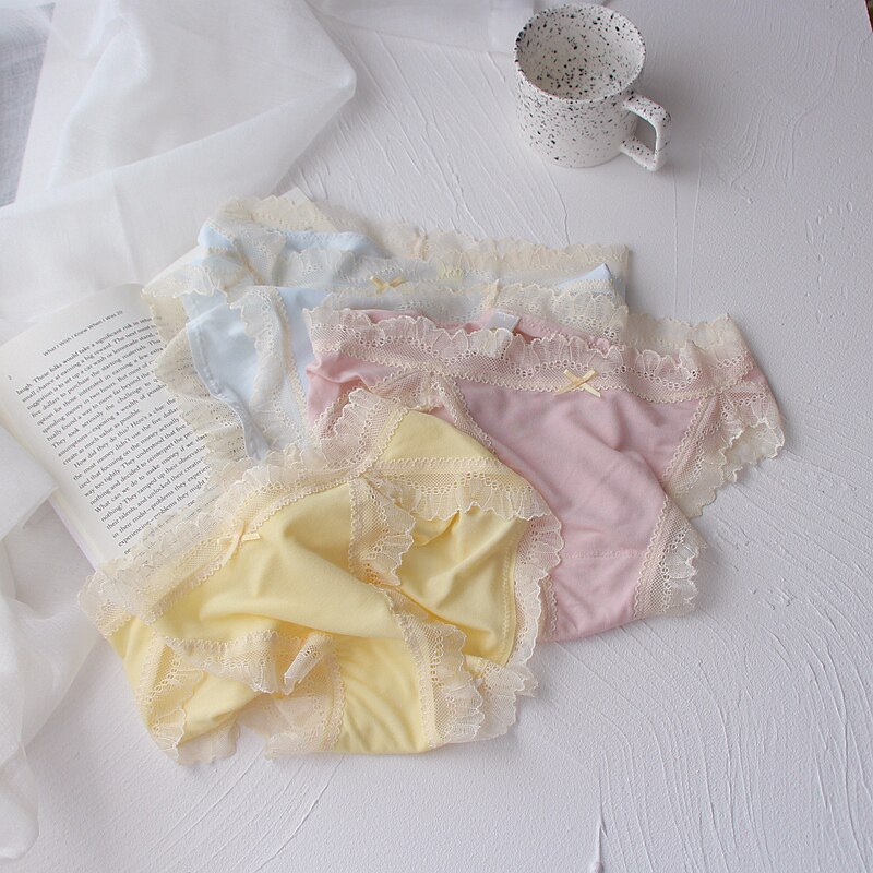 中腰莫代尔内裤女夏季薄款甜美蕾丝边无痕少女包臀透气棉裆三角裤