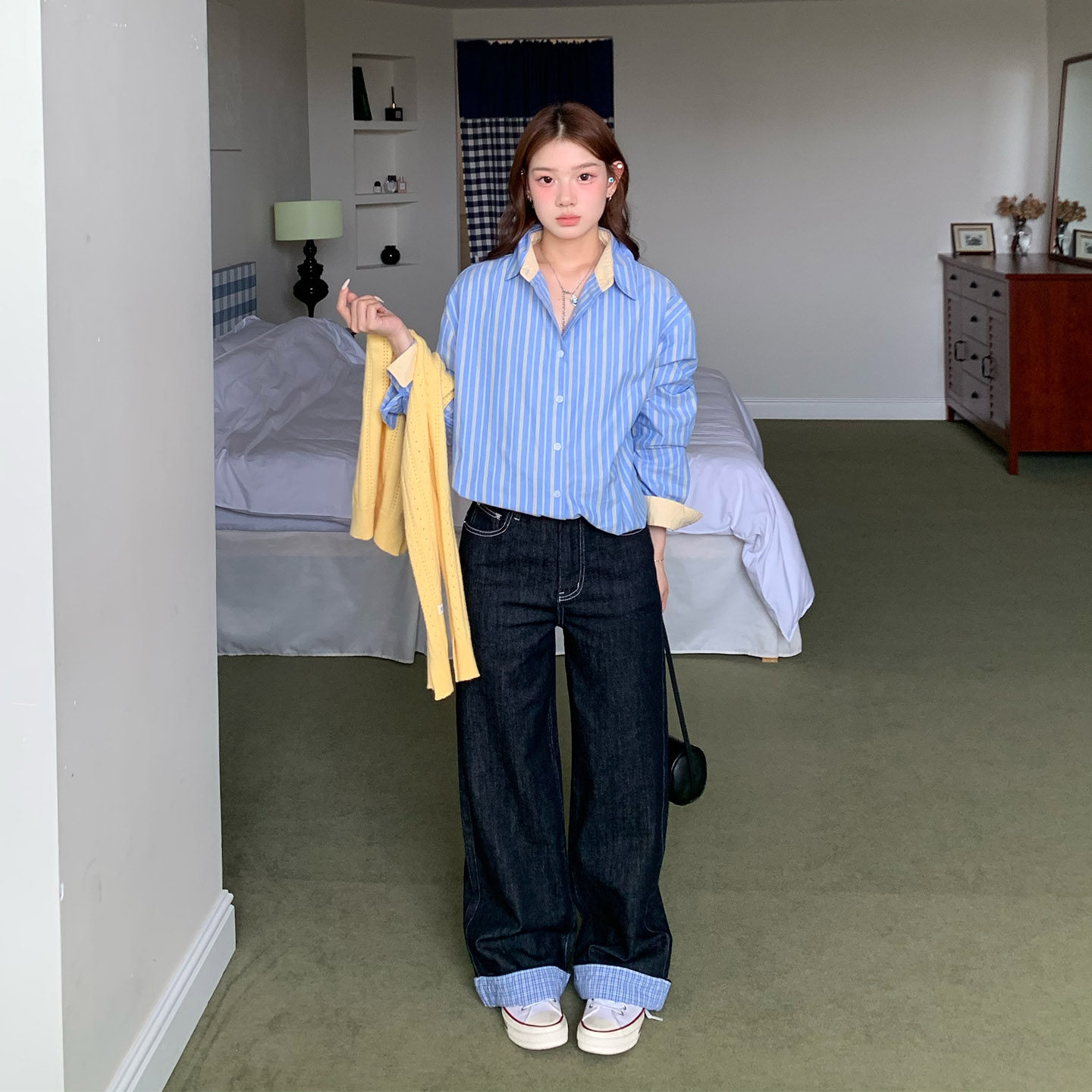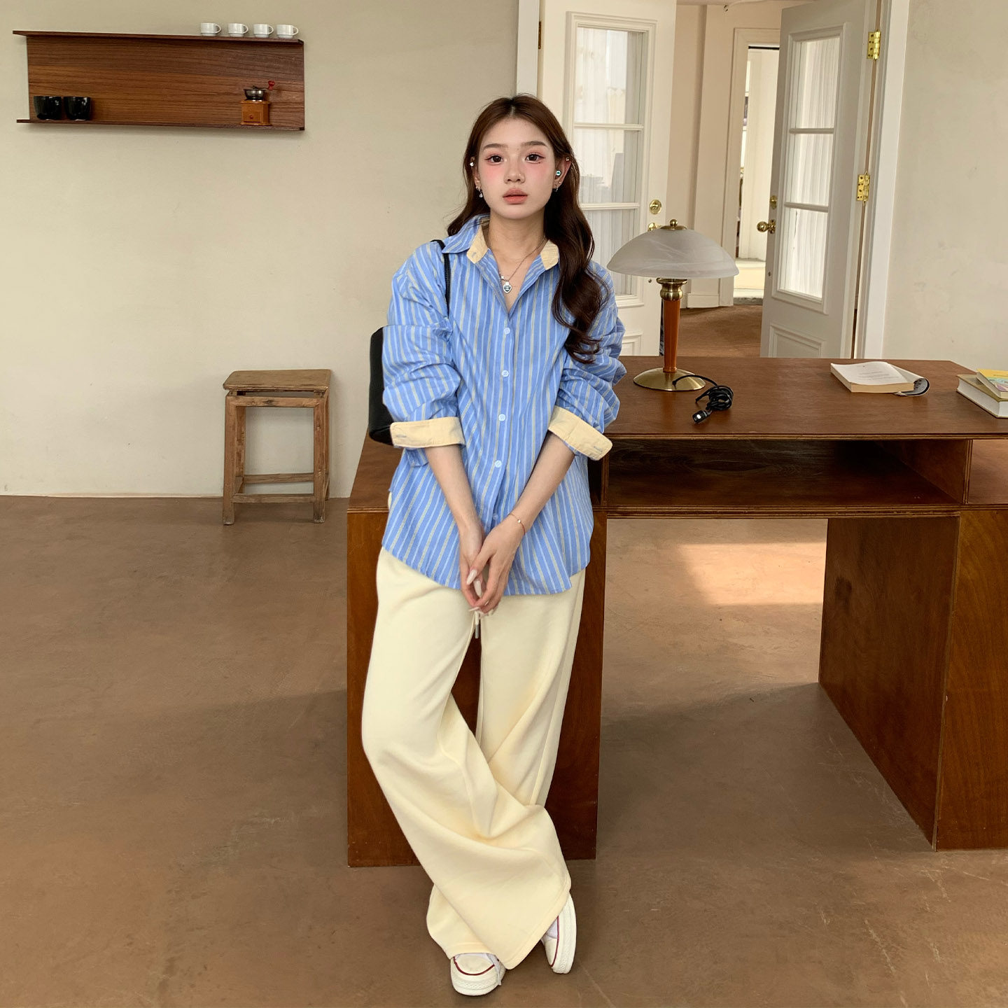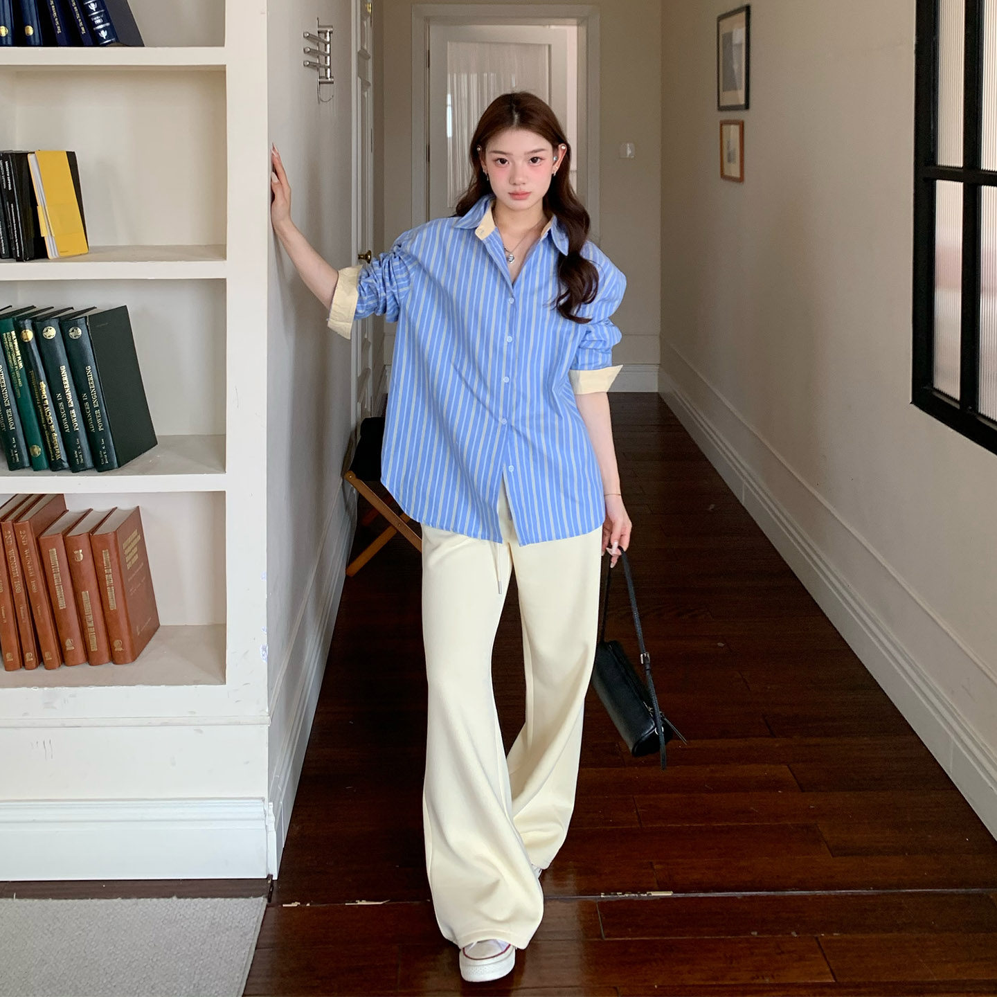 【限时价】橘子树在哪儿条纹撞色长袖衬衫女秋季纯棉外搭衬衣外套