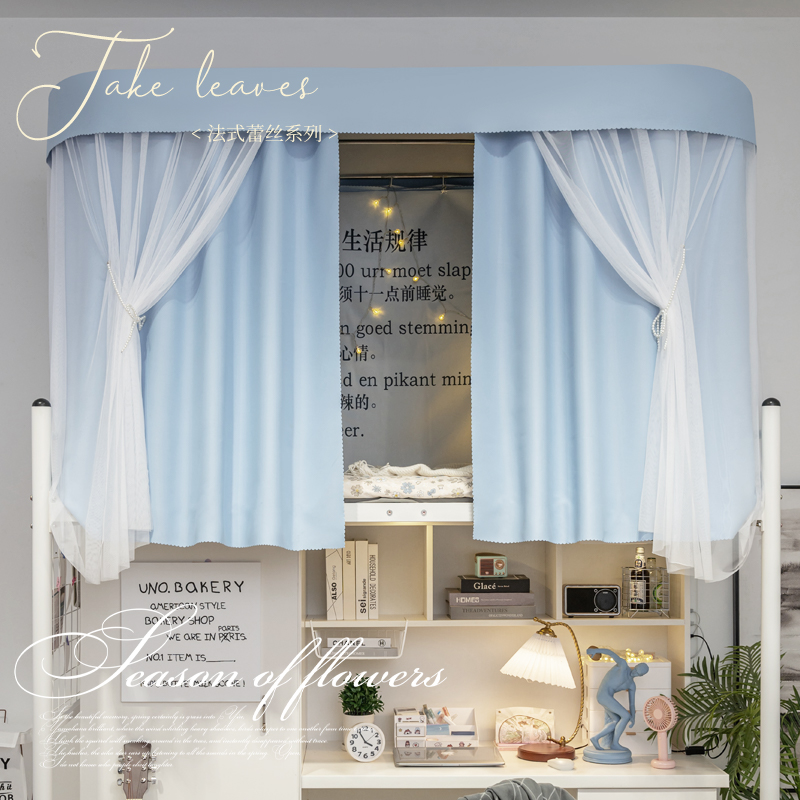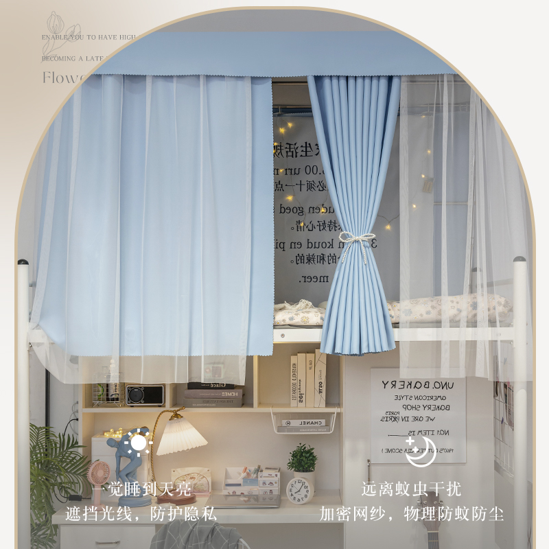 zaq全遮光宿舍上铺床帘u型轨道大学生寝室下铺专用遮挡帘窗帘蚊帐