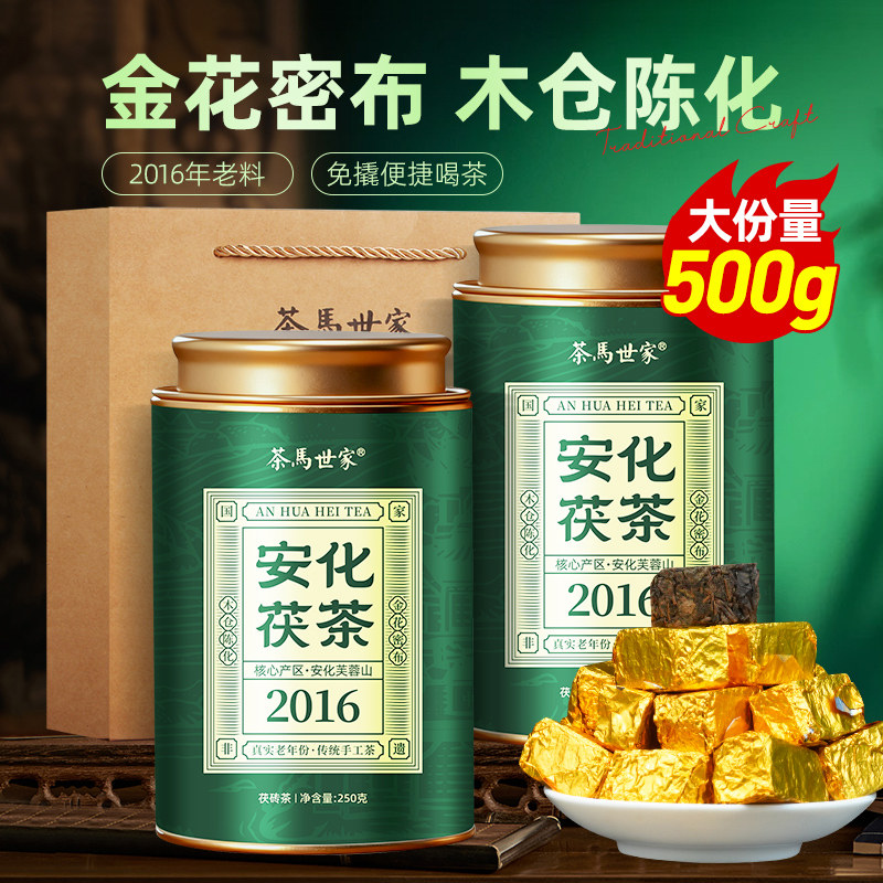 茶马世家茶叶安化黑茶2016年金花茯砖熟湖南特产黑茶自己喝送礼