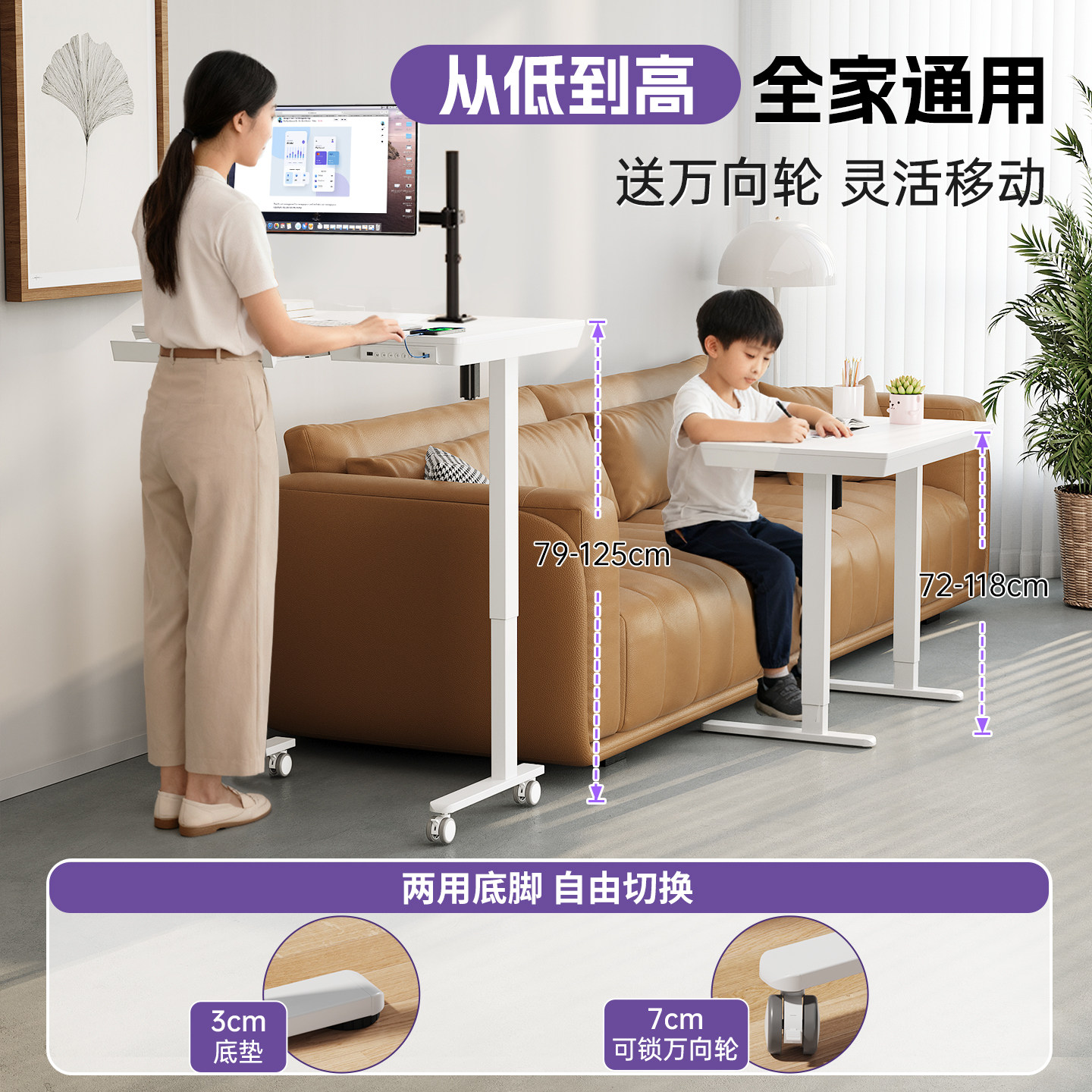 可移动电动升降桌带抽屉台式电脑学习桌家用书桌工作台升降桌子