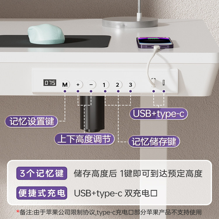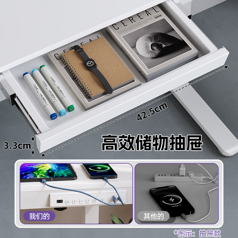 电动升降桌带无线充隐藏抽屉简约