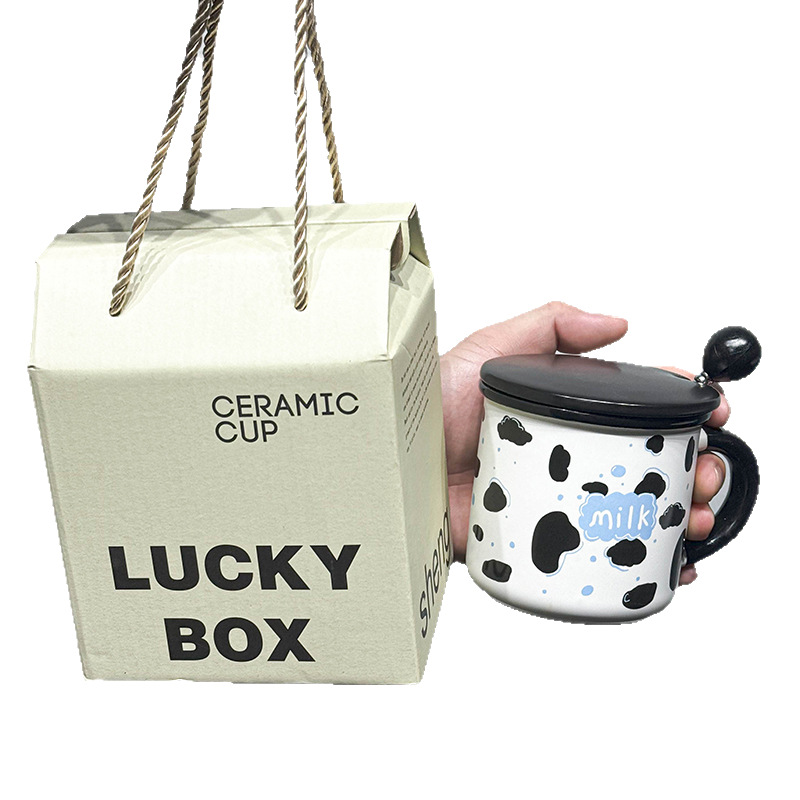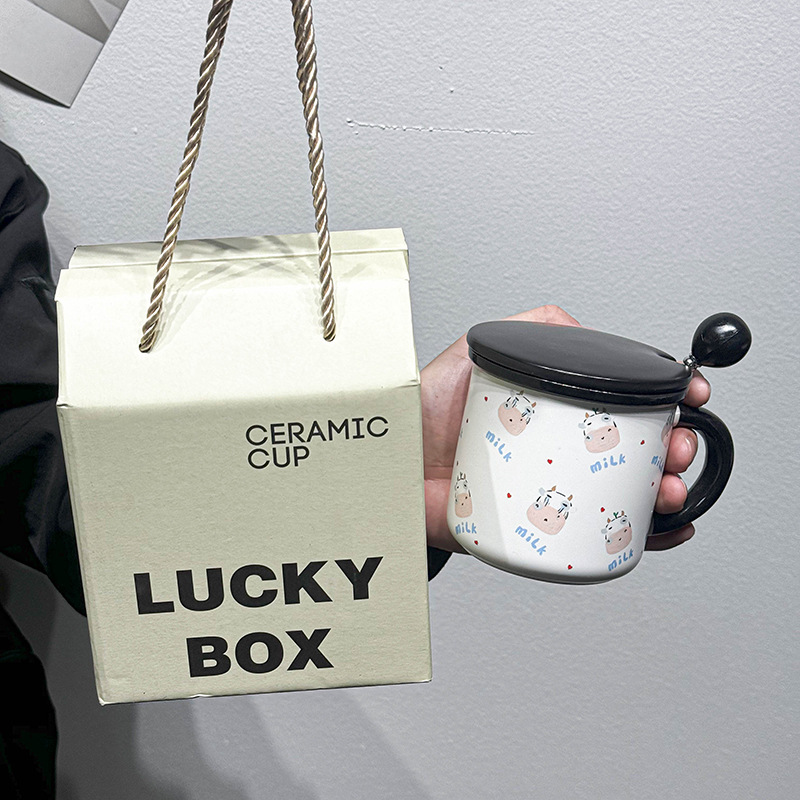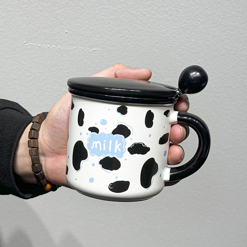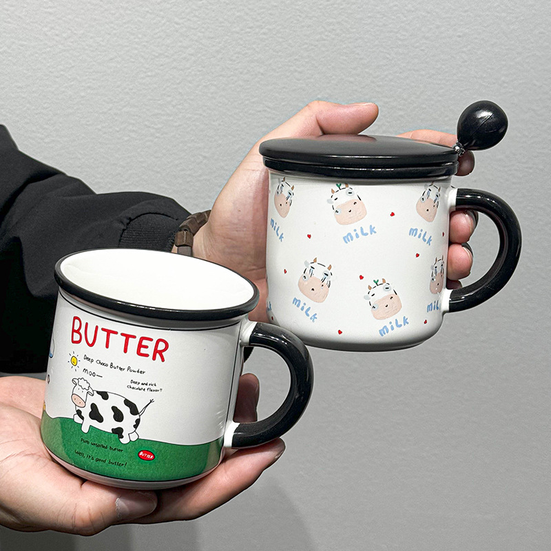 创意个性早餐牛奶杯卡通马克杯带盖勺水杯日式可爱立体陶瓷杯子