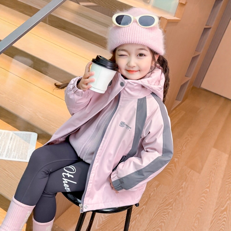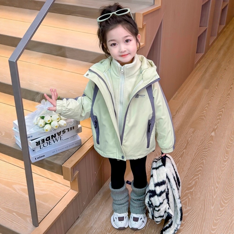 法国Uamtor女童秋冬季加厚外套2025新款时髦洋气三合一加绒冲锋衣