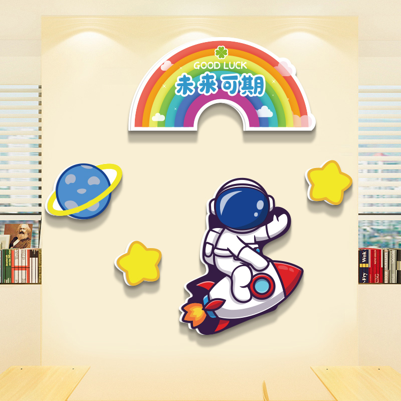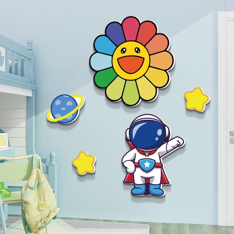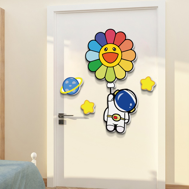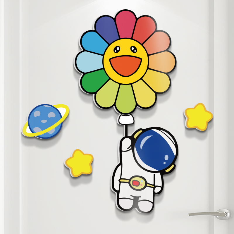太阳花宇航员儿童房装饰墙贴幼儿园学生男孩房间卧室床头门牌挂画