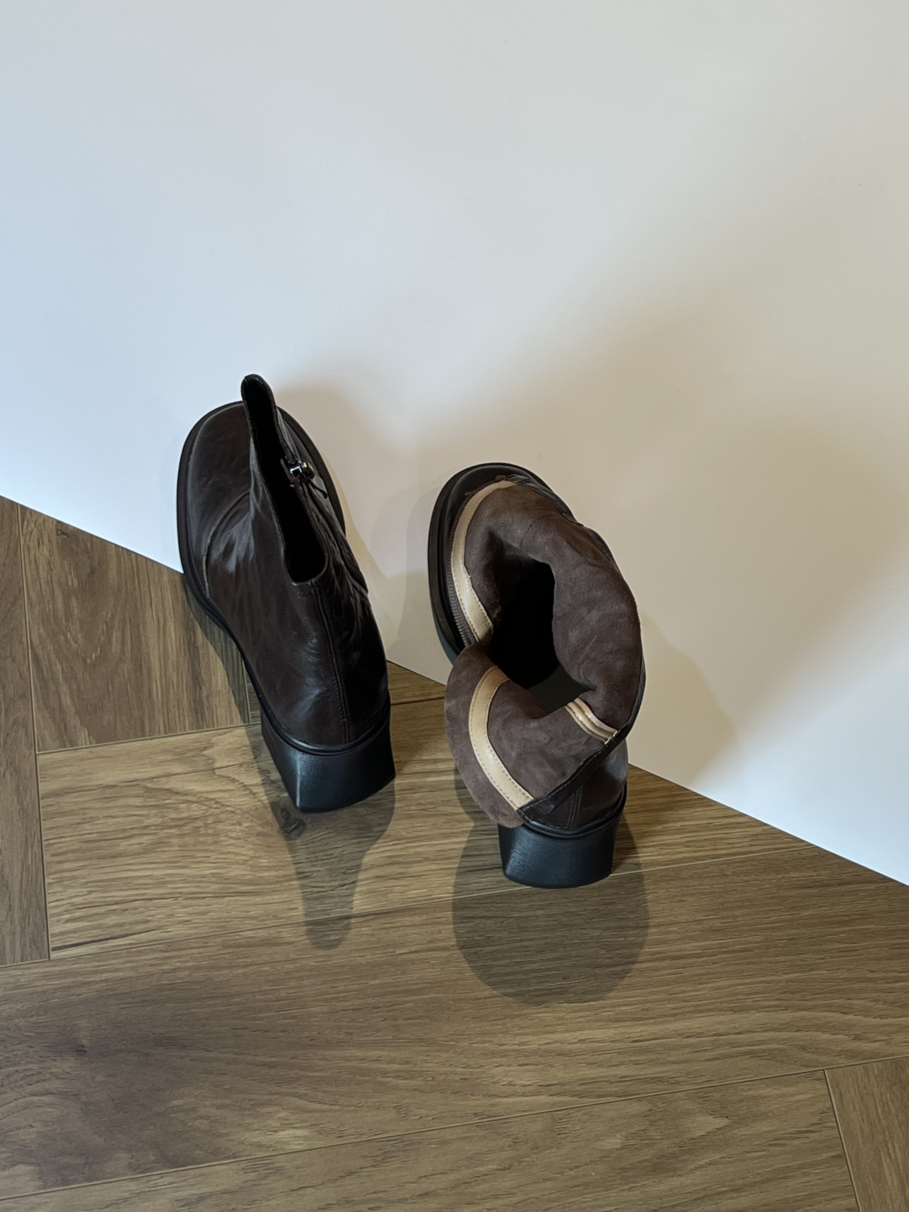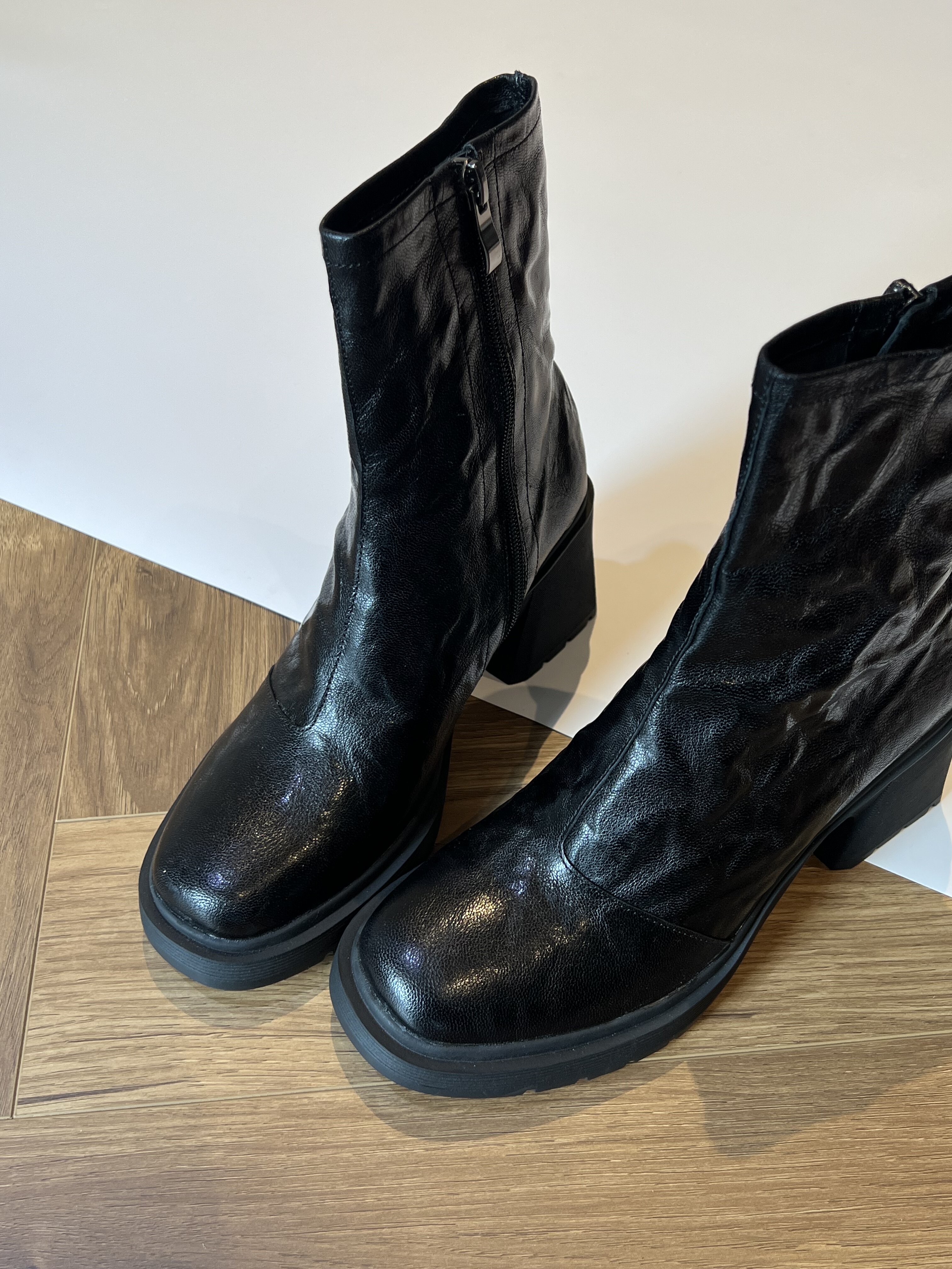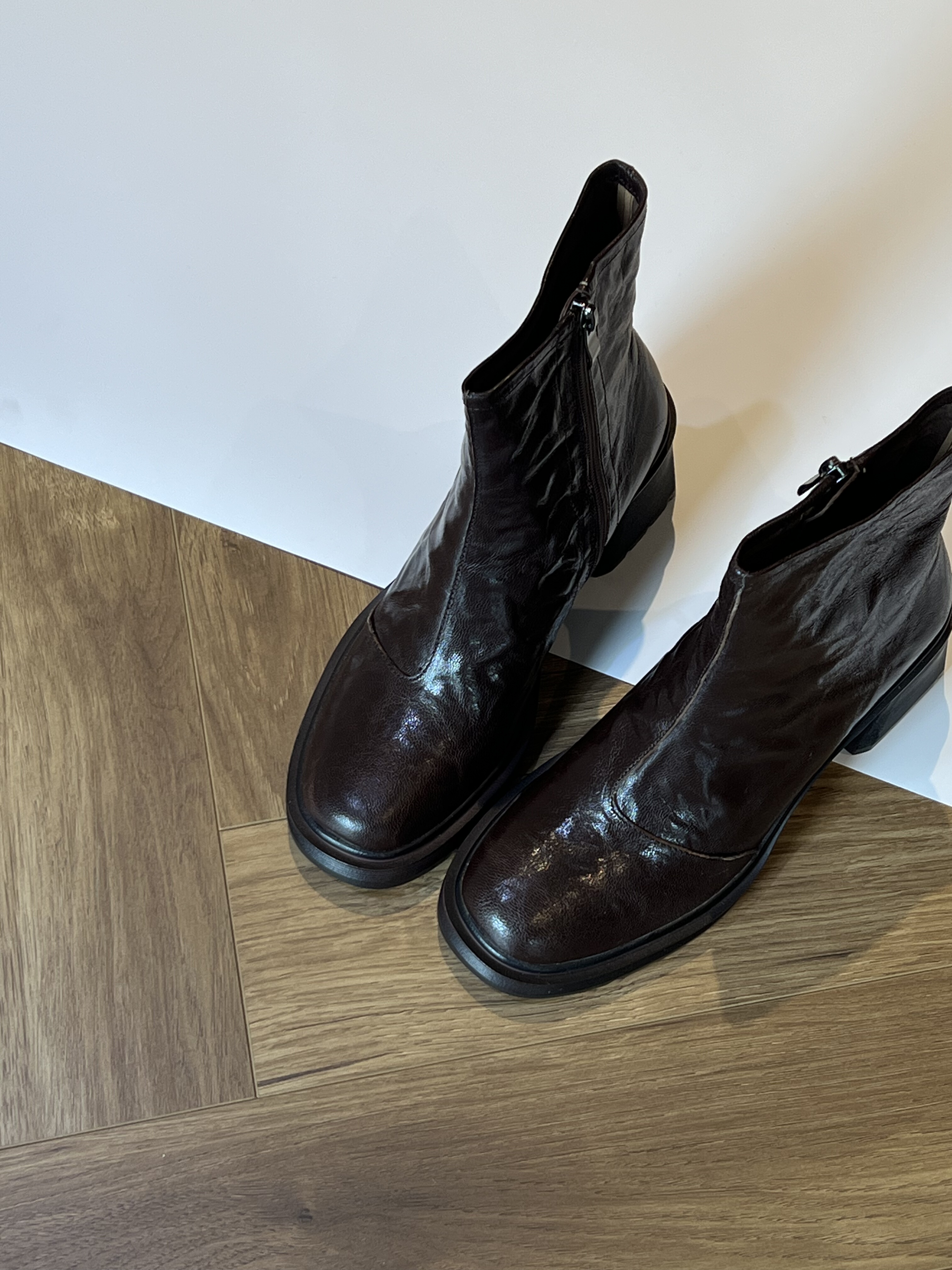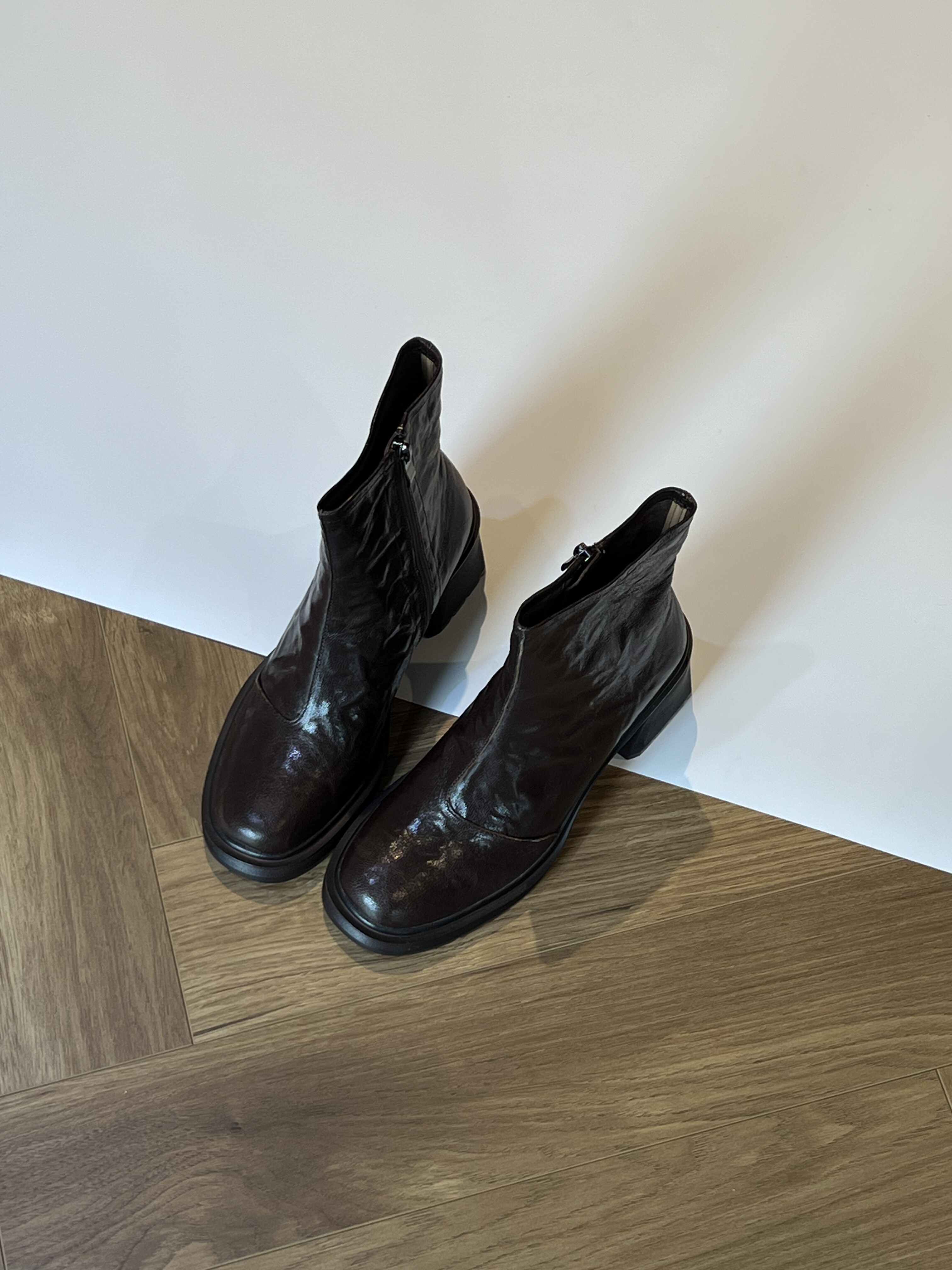 Moonyou 头层羊皮粗跟7cm侧拉链短靴女通勤显瘦百搭瘦瘦靴马丁靴