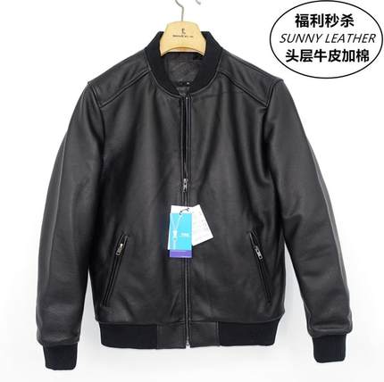 桑尼福利秒杀全头层牛皮真皮皮衣男短款皮夹克棉外套加棉保暖