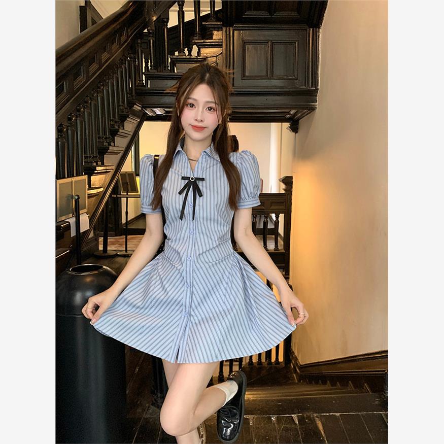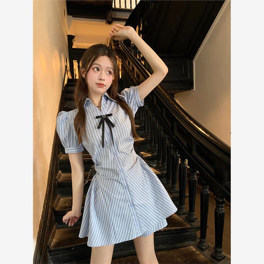 2025夏季新款条纹衬衫学院风连衣裙女腰显瘦时尚短裤两件时尚套装