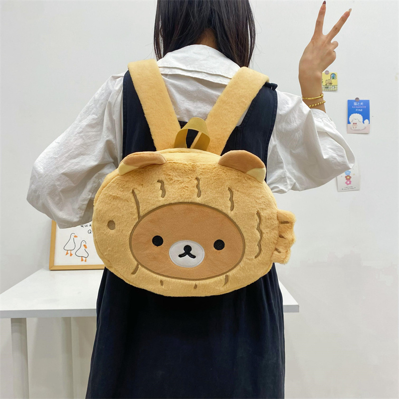 吉吉向上新款鲷鱼烧小熊双肩包休闲可爱百搭毛绒少女心双肩小包包