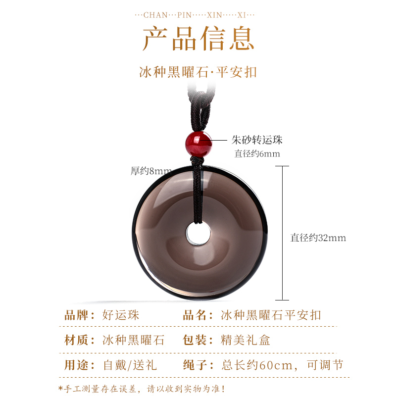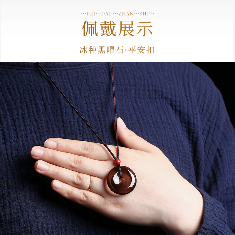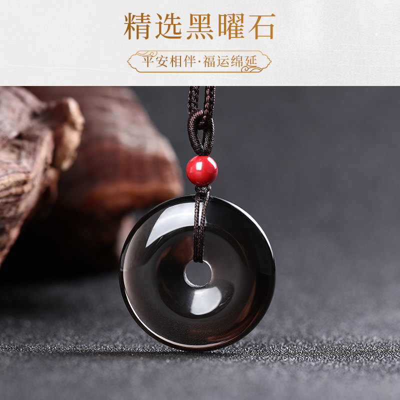 天然冰种黑曜石平安扣吊坠男士本命年护身符挂件水晶情侣项链送女