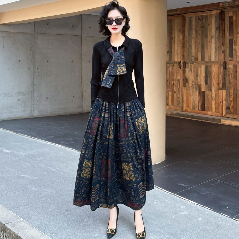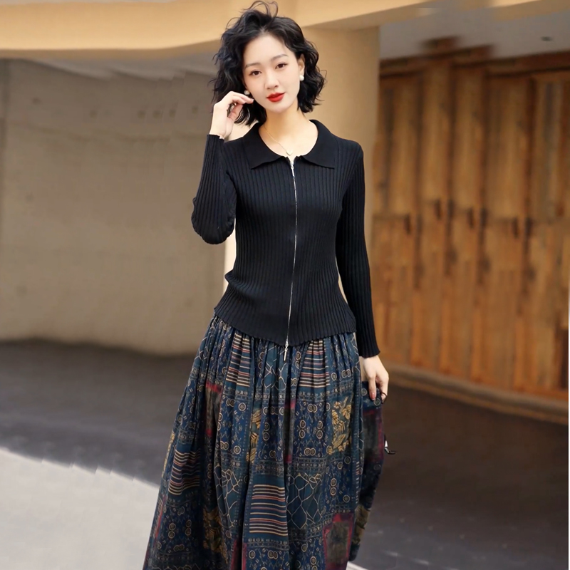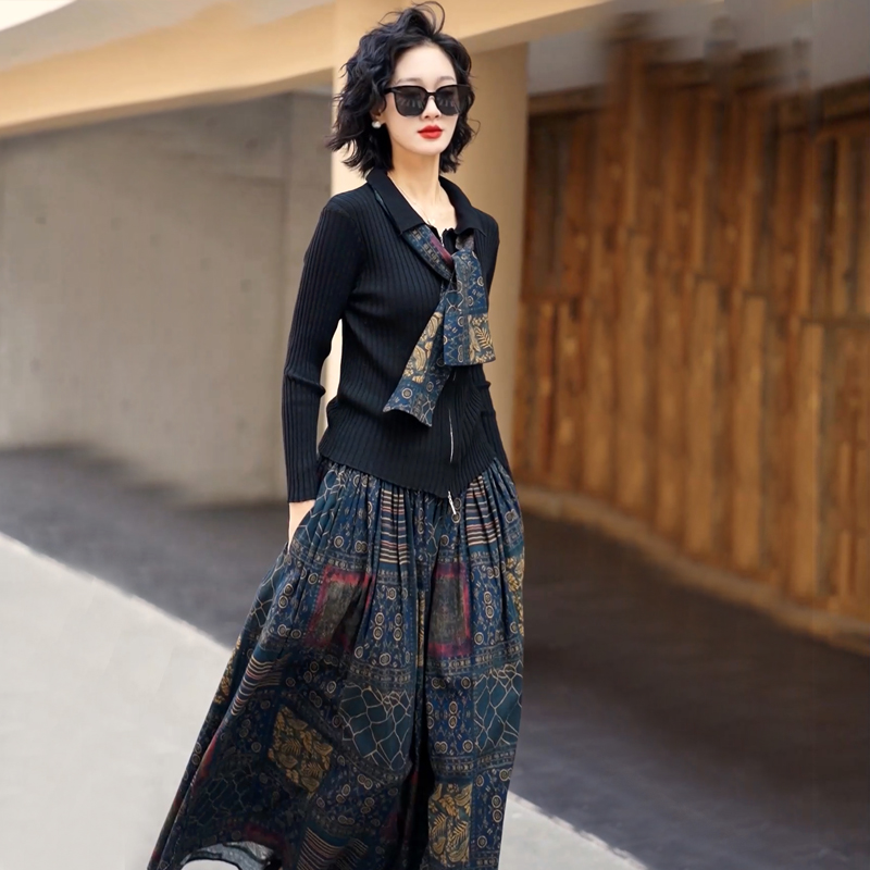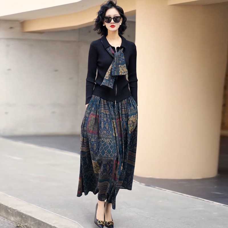 复古文艺蓝格子时尚套装裙女2025春季新款时尚轻奢减龄气质两件套