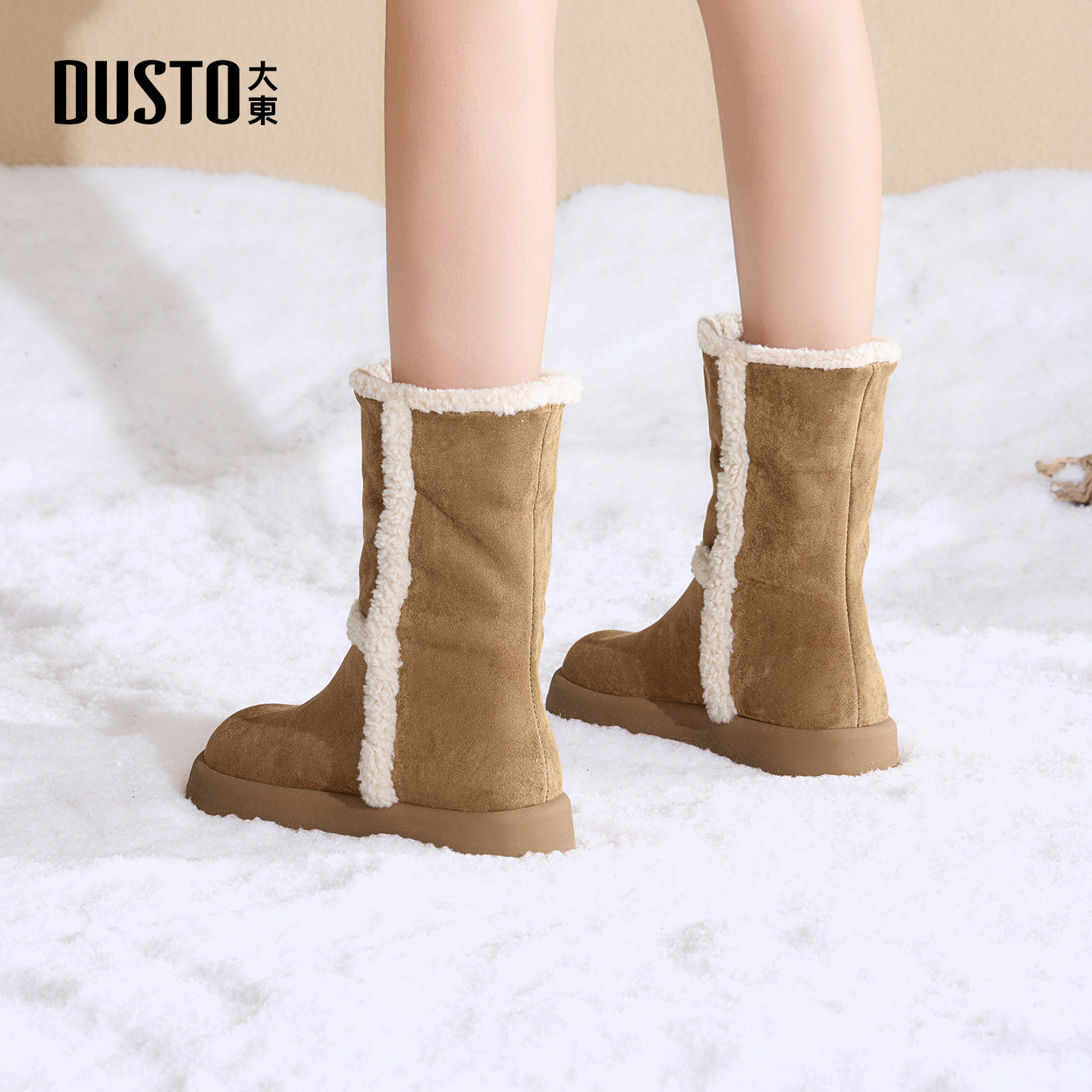大东皮毛一体雪地靴女2025新款冬季加绒保暖棉鞋中筒靴两穿棉靴女