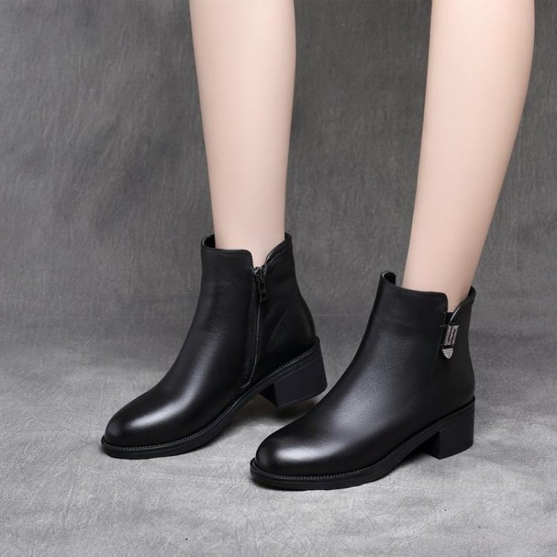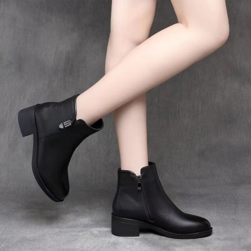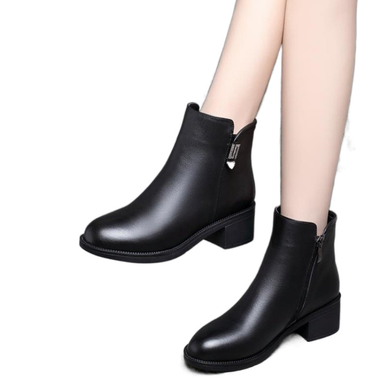 靴子女秋冬单靴加绒中年妈妈棉鞋跨境软皮软底短靴中老年皮鞋