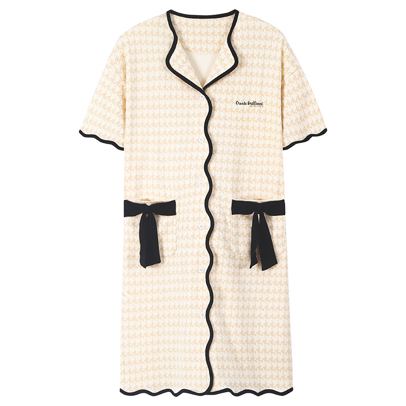 芬腾可安睡裙女夏季纯棉2025新款孕妇睡衣高级感千鸟格家居服夏天
