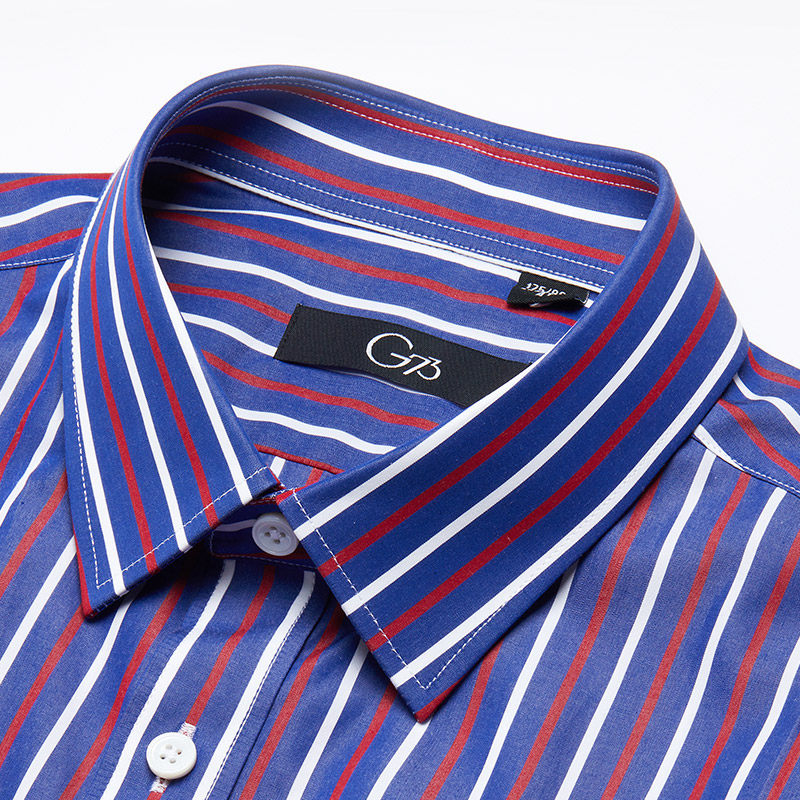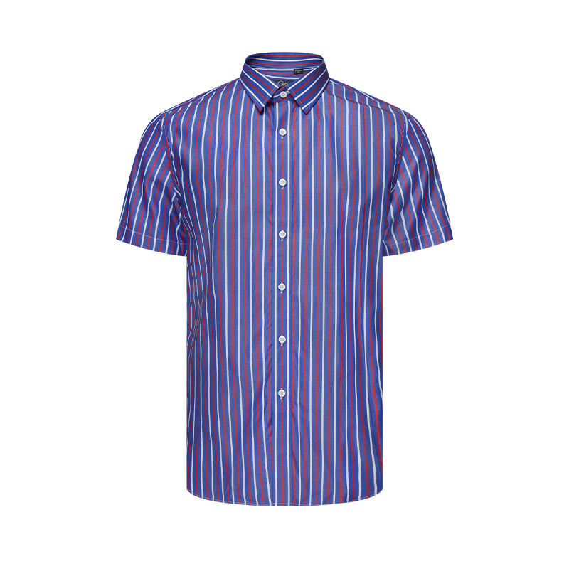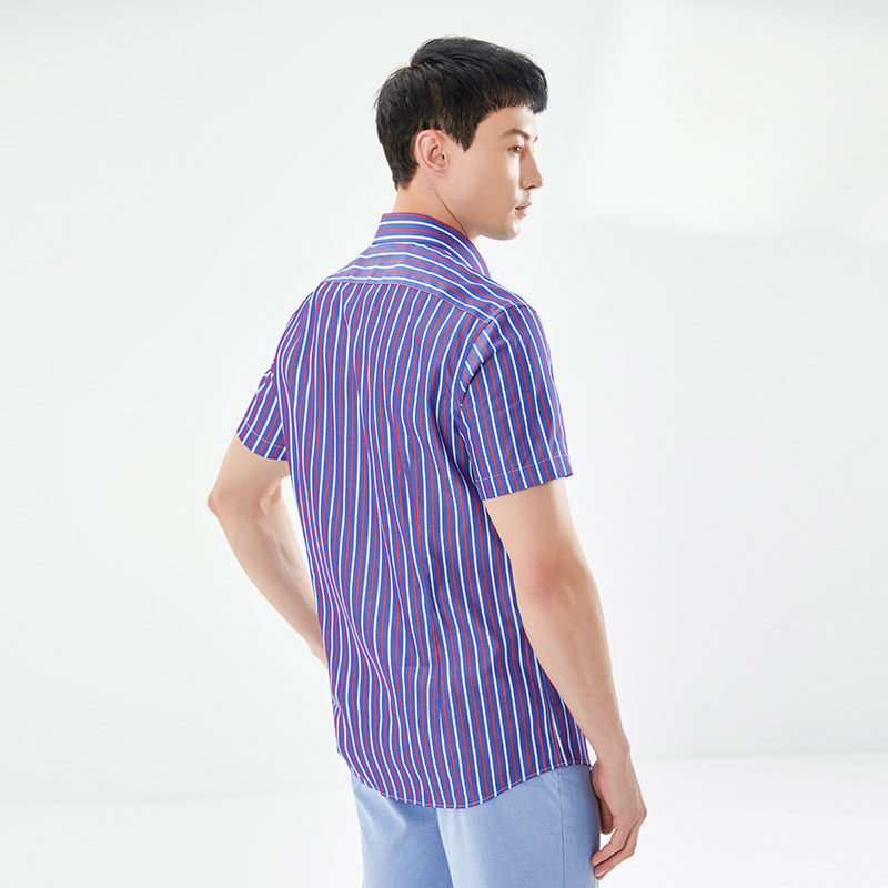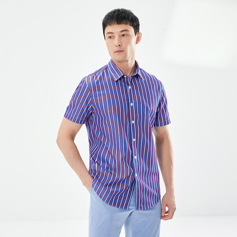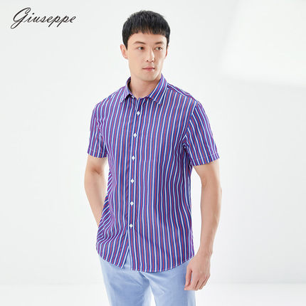 乔治白夏季男士纯棉短袖衬衫休闲撞色条纹衬衣修身舒适半袖上衣潮