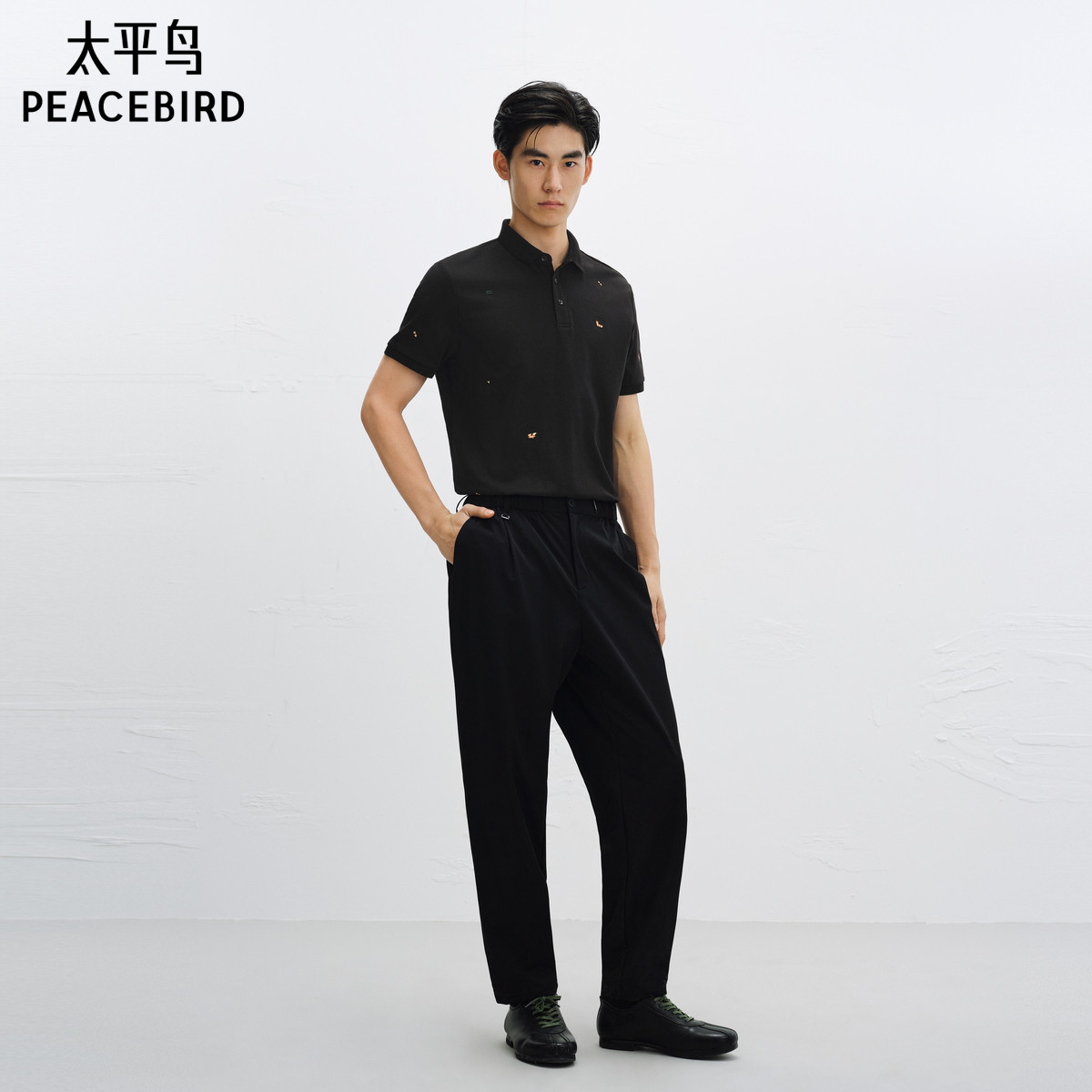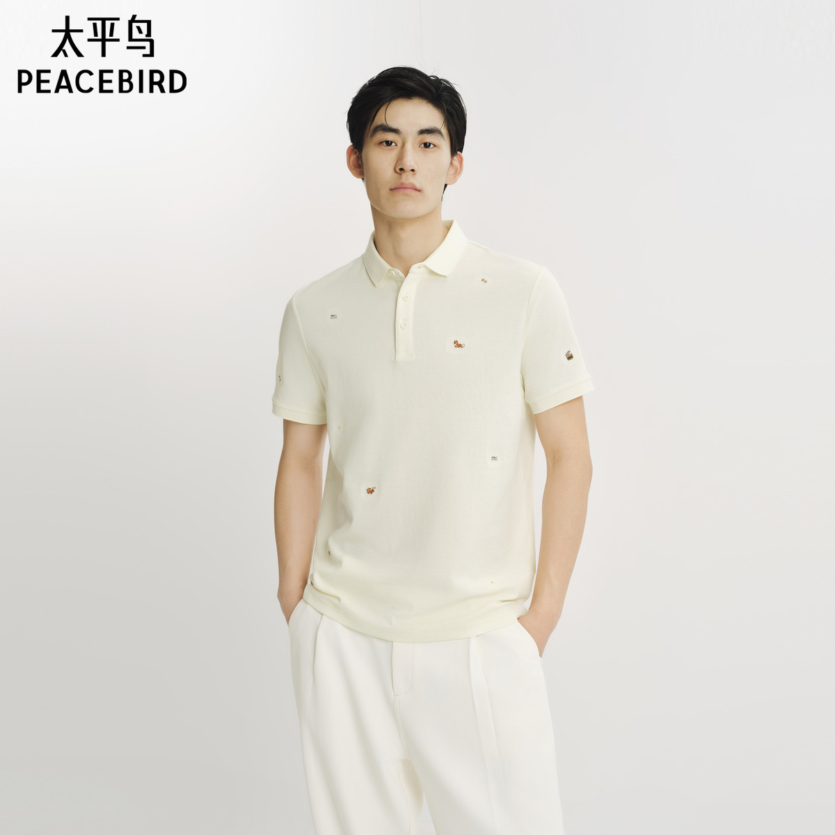 【凉感】太平鸟男装 商务休闲polo衫索罗娜刺绣夏季翻领短袖t恤