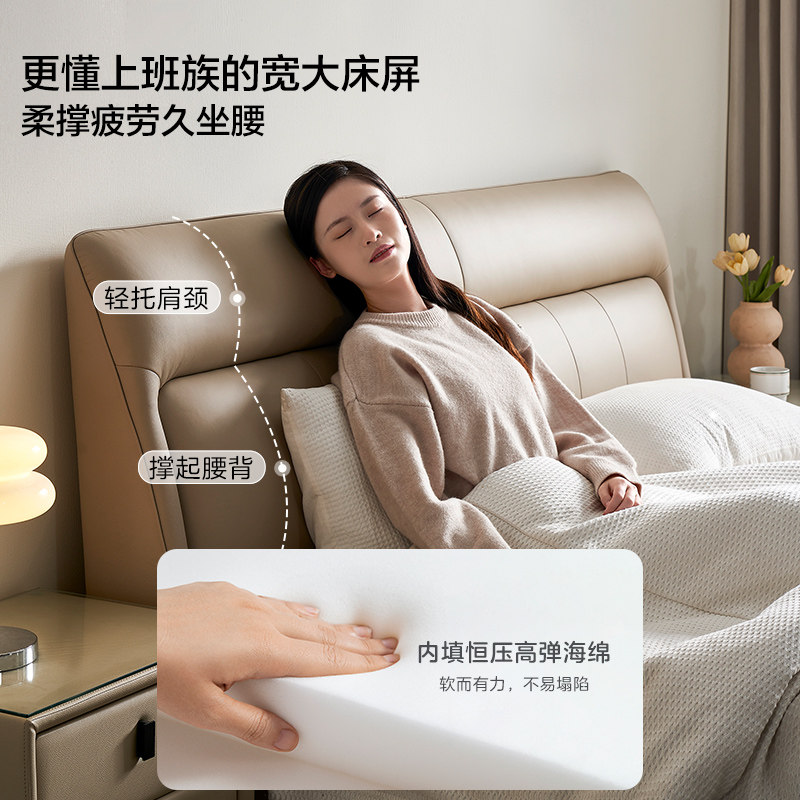 全友家居2025新款现代简约卧室软包双人床高端大气慕夕真皮储物床