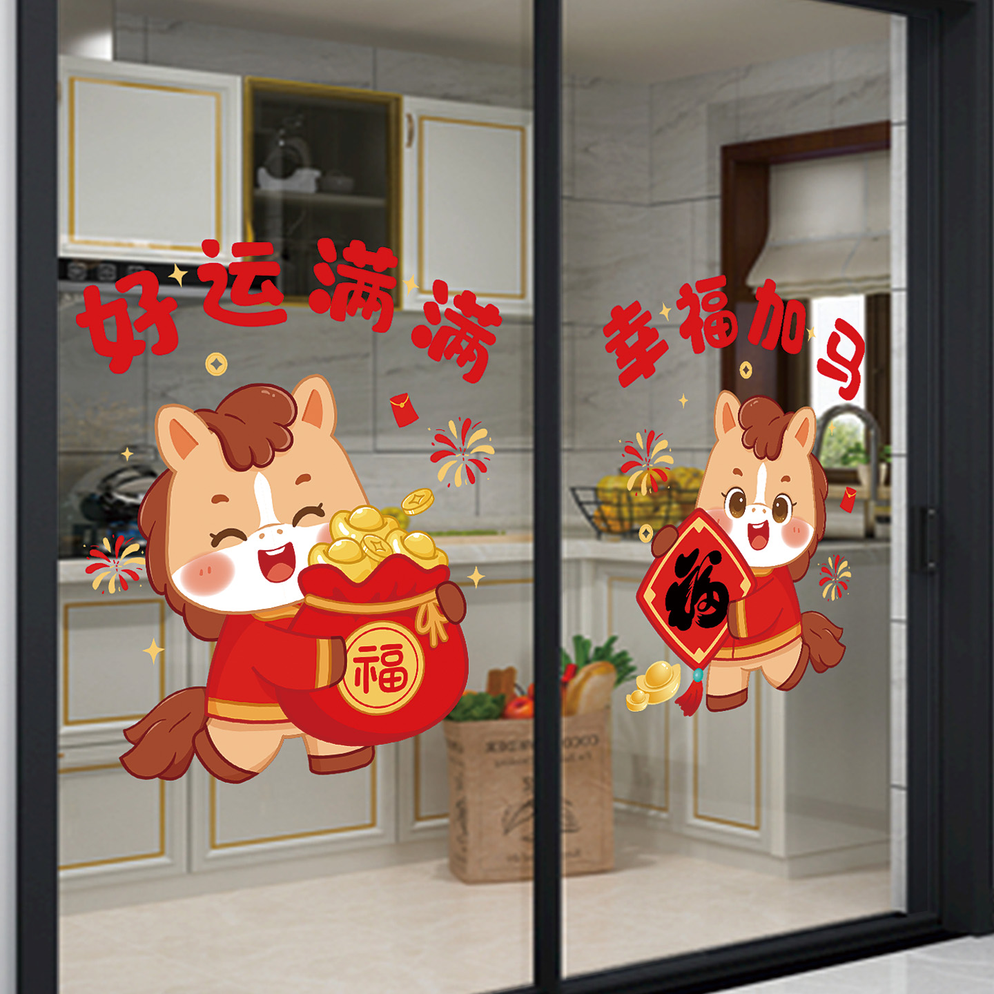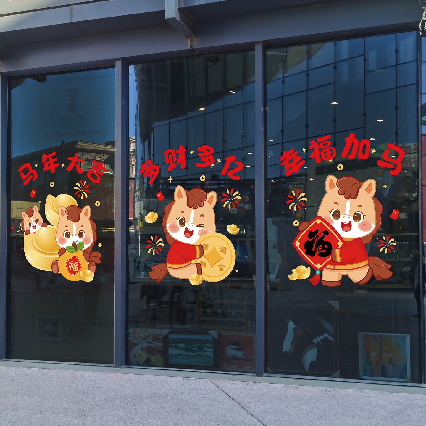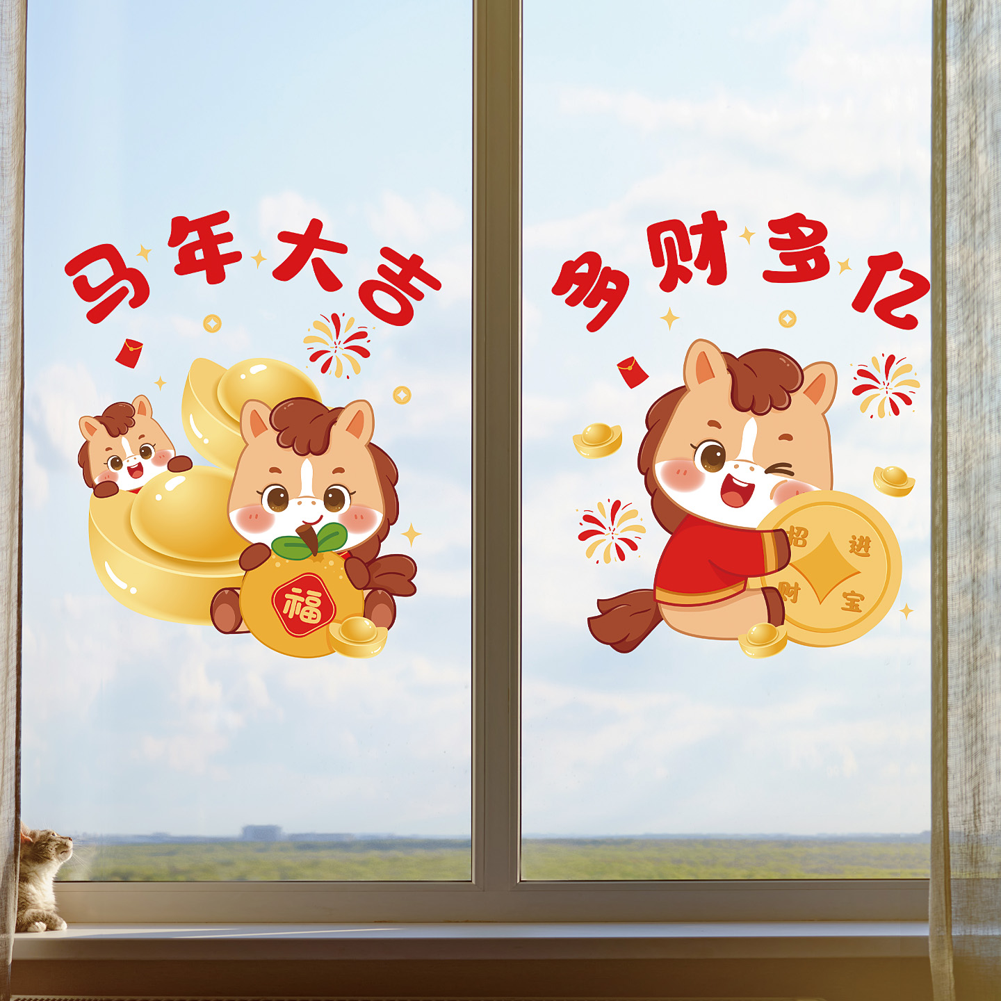 2026新年静电卡通马玻璃贴纸春节马年窗户门贴过年装饰窗贴窗花