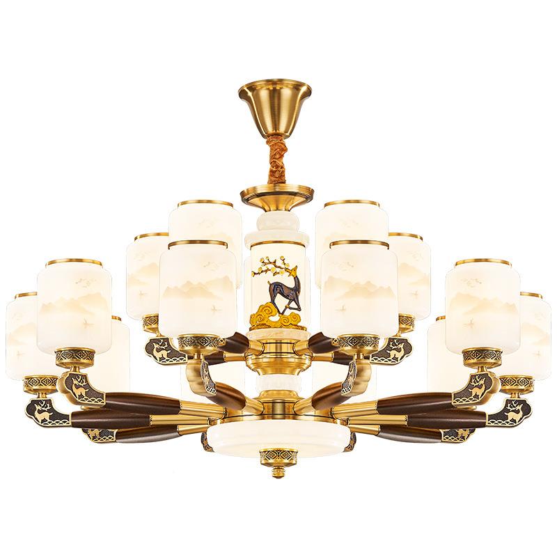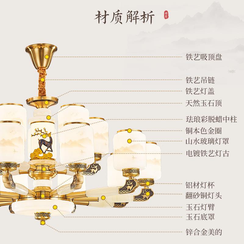 新中式全铜吊灯木灯具福高升528家大气用实别墅自建房鹿书房客厅