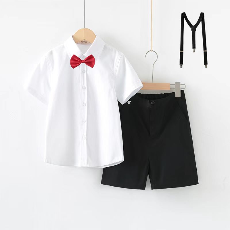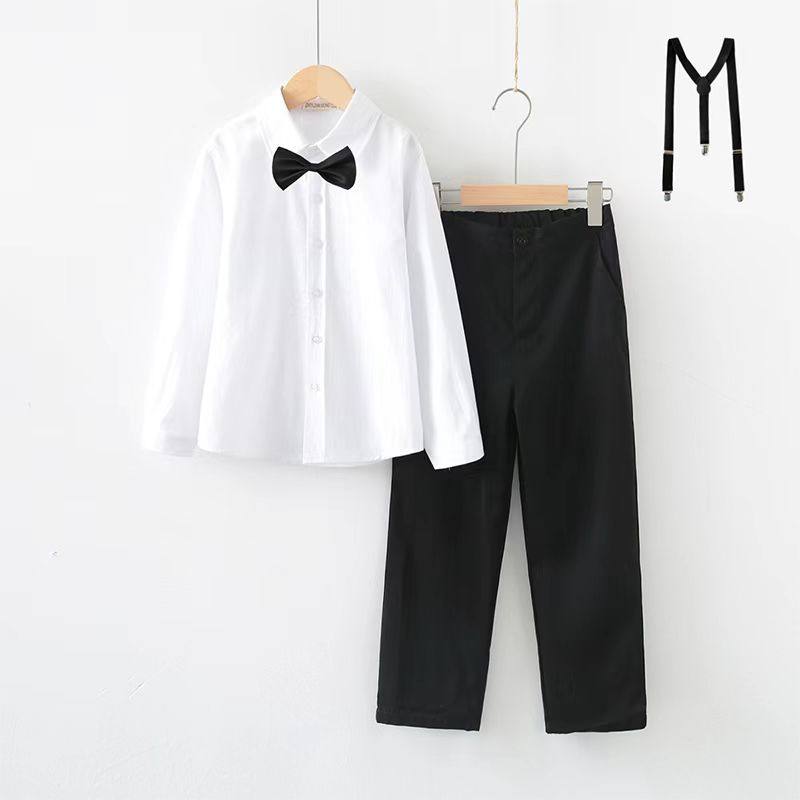 男童礼服小主持人背带裤套装儿童白衬衫花童钢琴演出幼儿园毕业服
