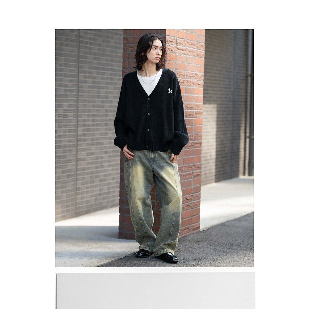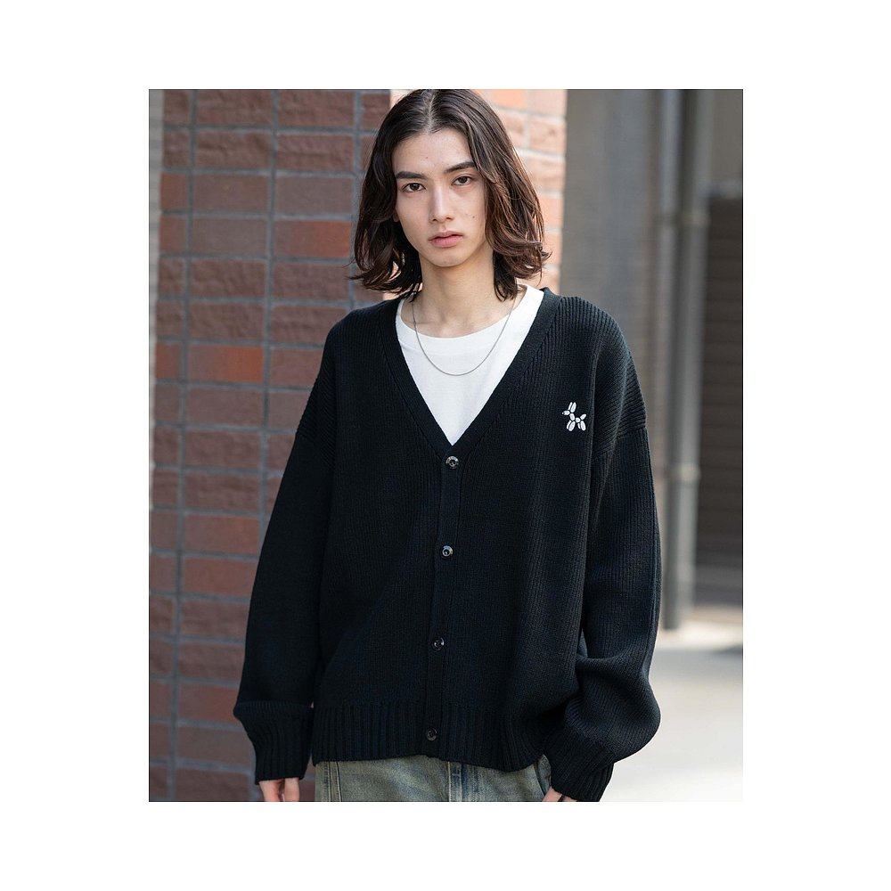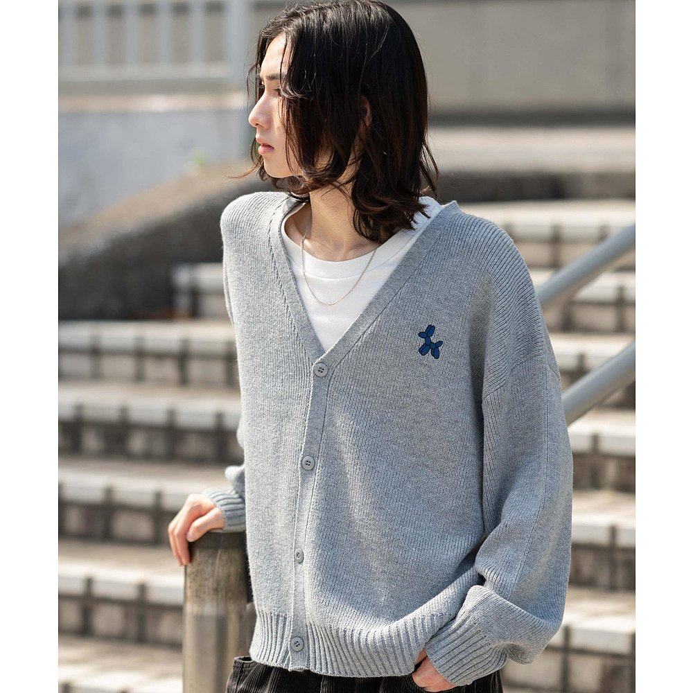 1h可退 日本直邮WEGO 男女同款 宽松长袖针织开衫 单色刺绣logo设
