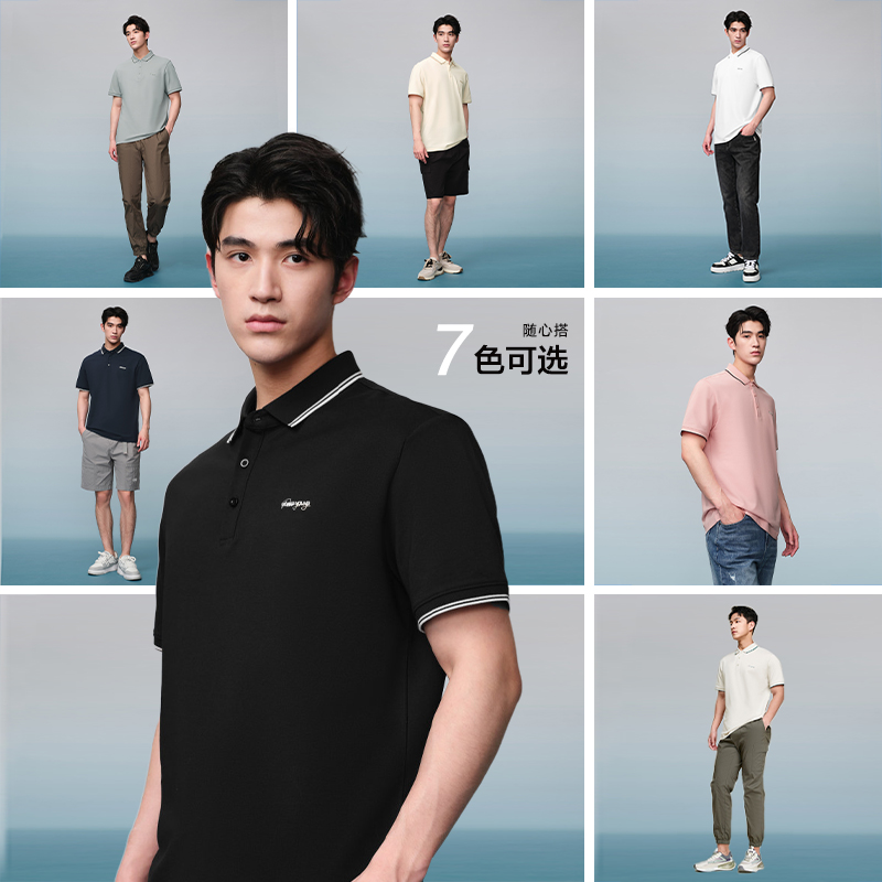 HLA/海澜之家男士短袖polo衫翻领T恤中年爸爸半袖宽松上衣男