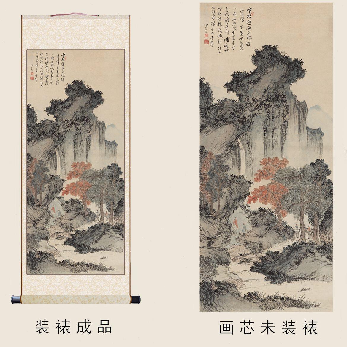 溥儒丛林遇雨图国画高清微喷复制客厅书房办公室玄关卷轴装饰挂画